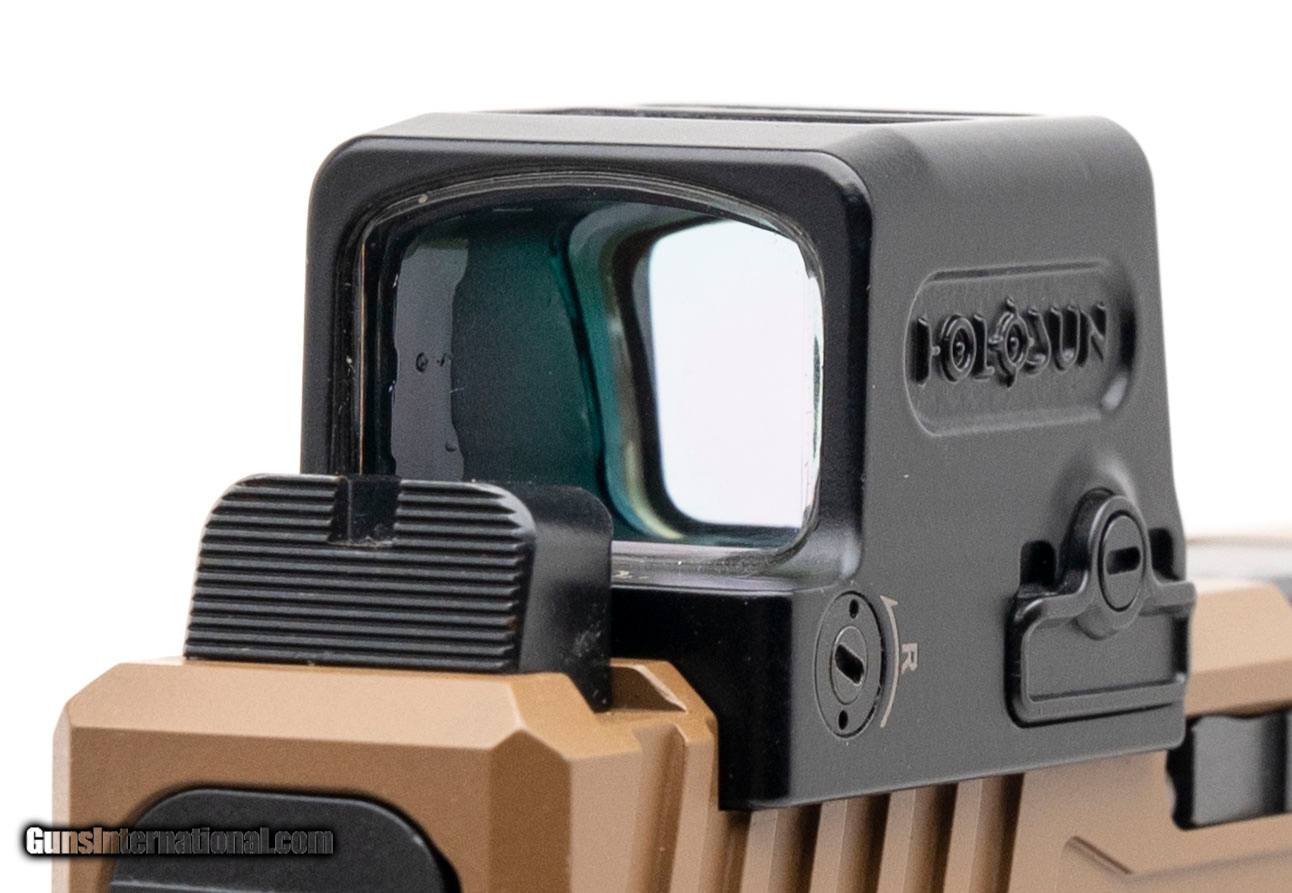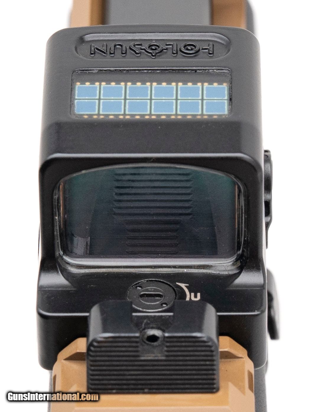 Description: "SN: CCBD405. Modern production, 9mm with an 4.02"" barrel. Bore is bright with strong rifling. Compact striker fired pistol with an aftermarket slide w/lightning cut, Holosun 509T X2 green dot optic, and blacked out tall sights. Overall condition is excellent. Comes with case and two extra magazines. SOLD |