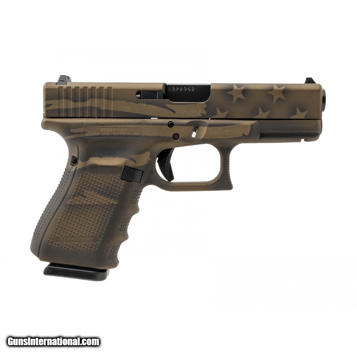 SN: ABPA962. Modern production. 9x19 parabellum with a 4.02"" barrel. Bore is excellent. Compact polymer frame with custom battle worn flag cerakote finish. Overall condition is excellent. Comes with box, 2 extra magazines, loader and backstraps.