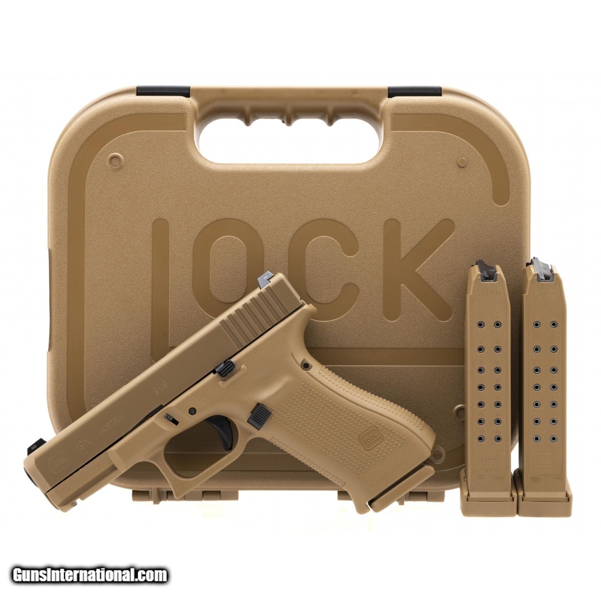 SN:BWHA935. Semi-automatic polymer framed 4.01"" FDE pistol with a lanyard loop & Glock AU2 night sights. In excellent condition. Comes in box with 2 spare magazines, lock, loader, & backstraps.