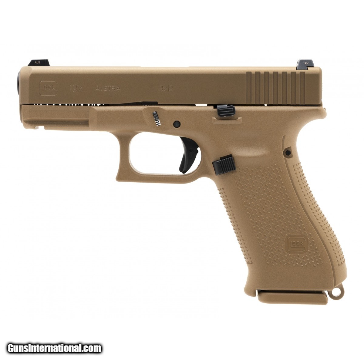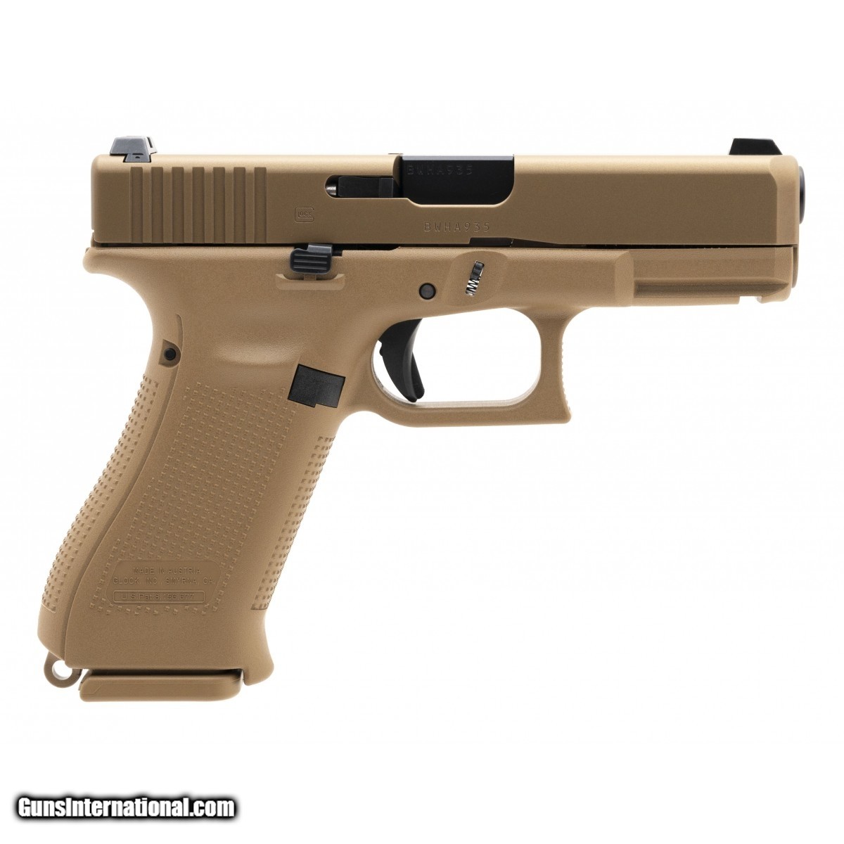 Description: " SN:BWHA935. Semi-automatic polymer framed 4.01"" FDE pistol with a lanyard loop & Glock AU2 night sights. In excellent condition. Comes in box with 2 spare magazines, lock, loader, & backstraps. SOLD |