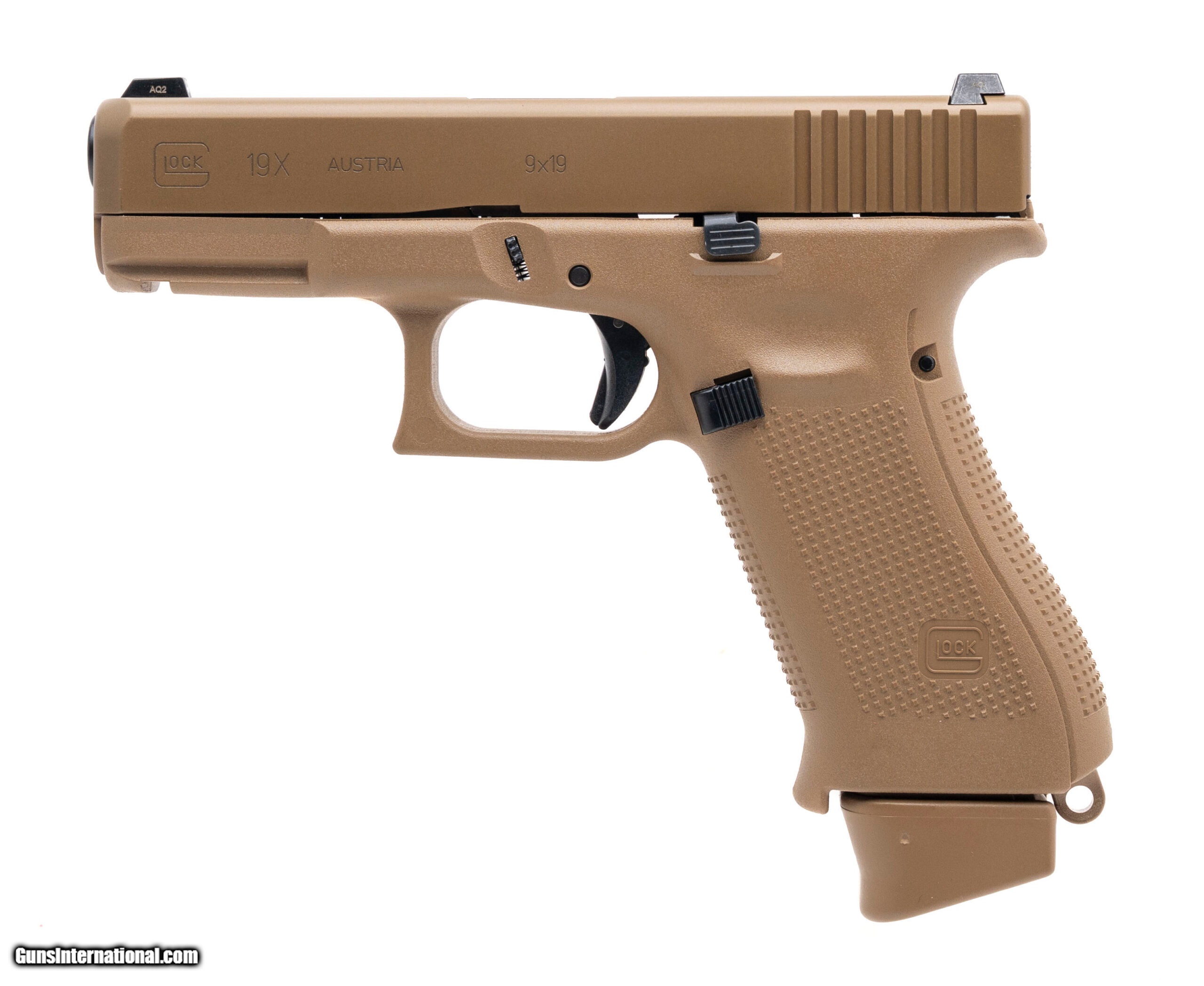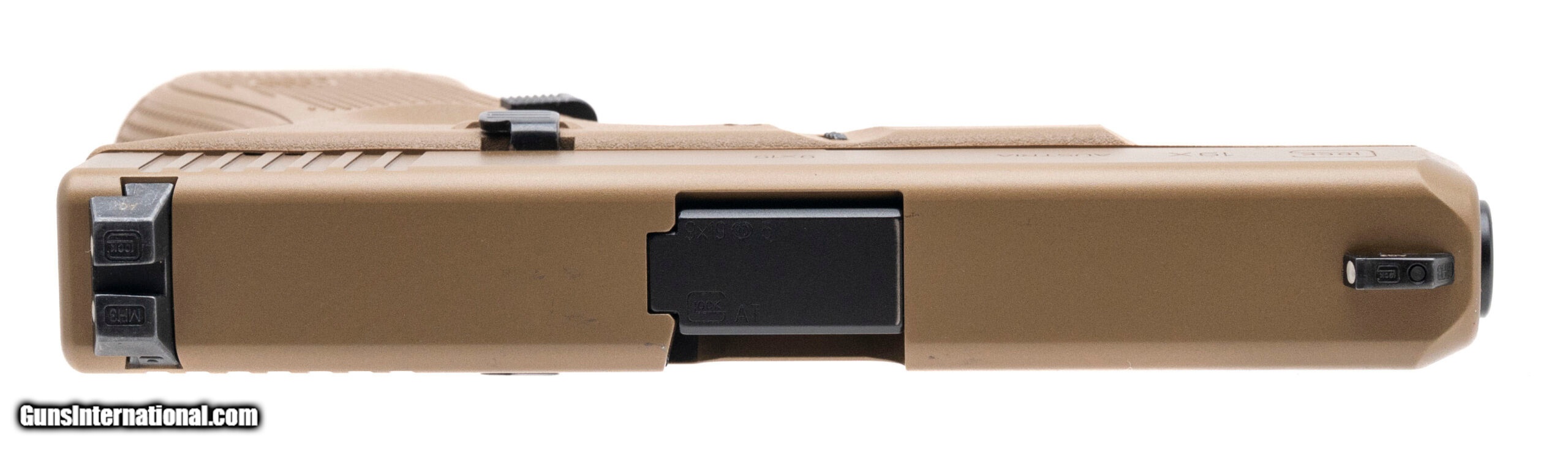 Description: "SN: BGWS745. Modern production, 9mm with a 4.02"" marksman barrel. Bore is excellent. Striker fired pistol with night sights. PVD coyote tan finish and polymer frame are in excellent condition. SOLD |