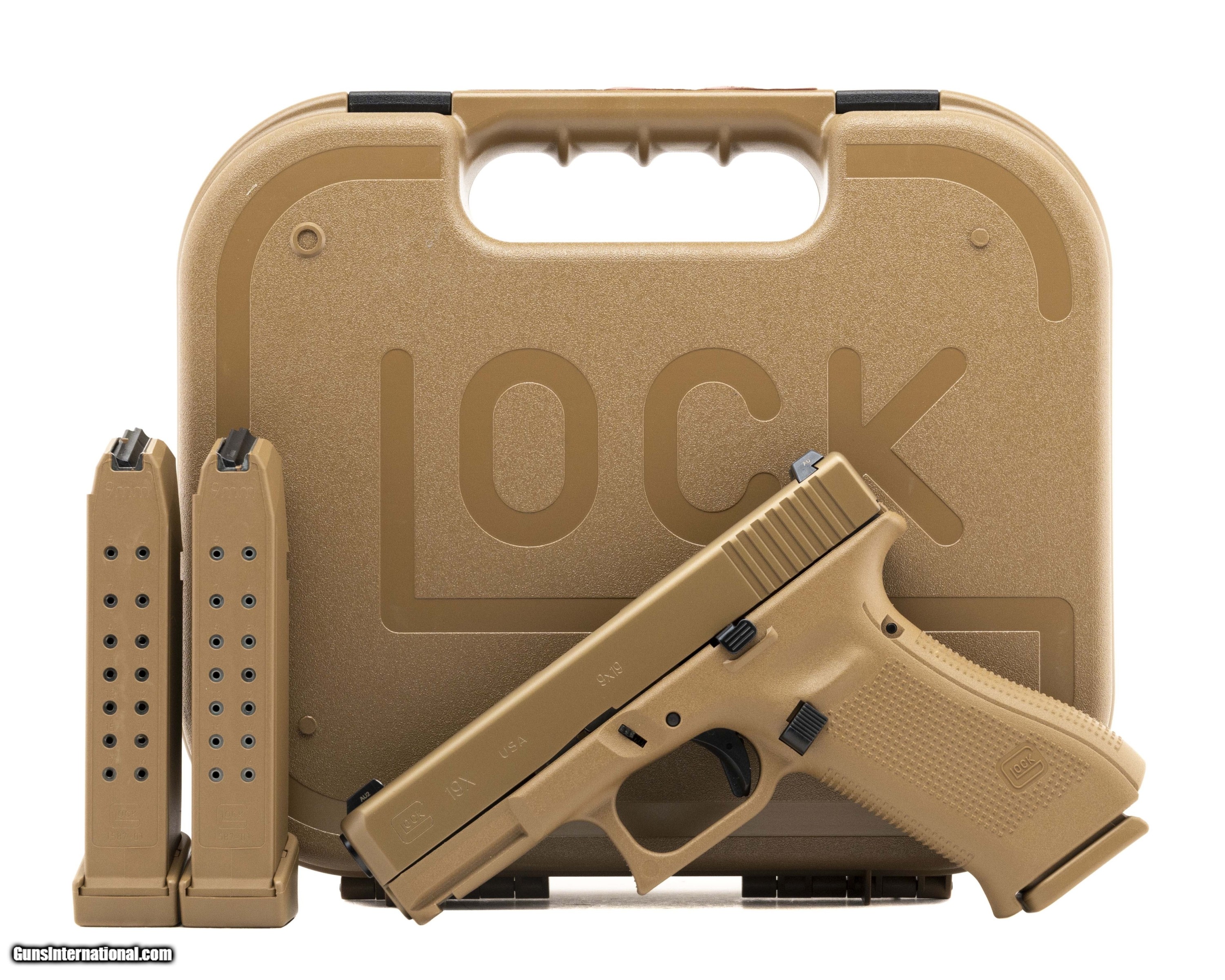 Description: "Glock 19X Pistol 9mm, Striker Fired, Compact size with an 4.02"" Marksman Barrel, Polymer Frame, Coyote Finish, Glock Night Sights, 3 Magazines, Lanyard Loop, Ambidextrous Slide Stop Lever. NEW. UPC:764503040313 (STOCK PHOTO) SOLD |