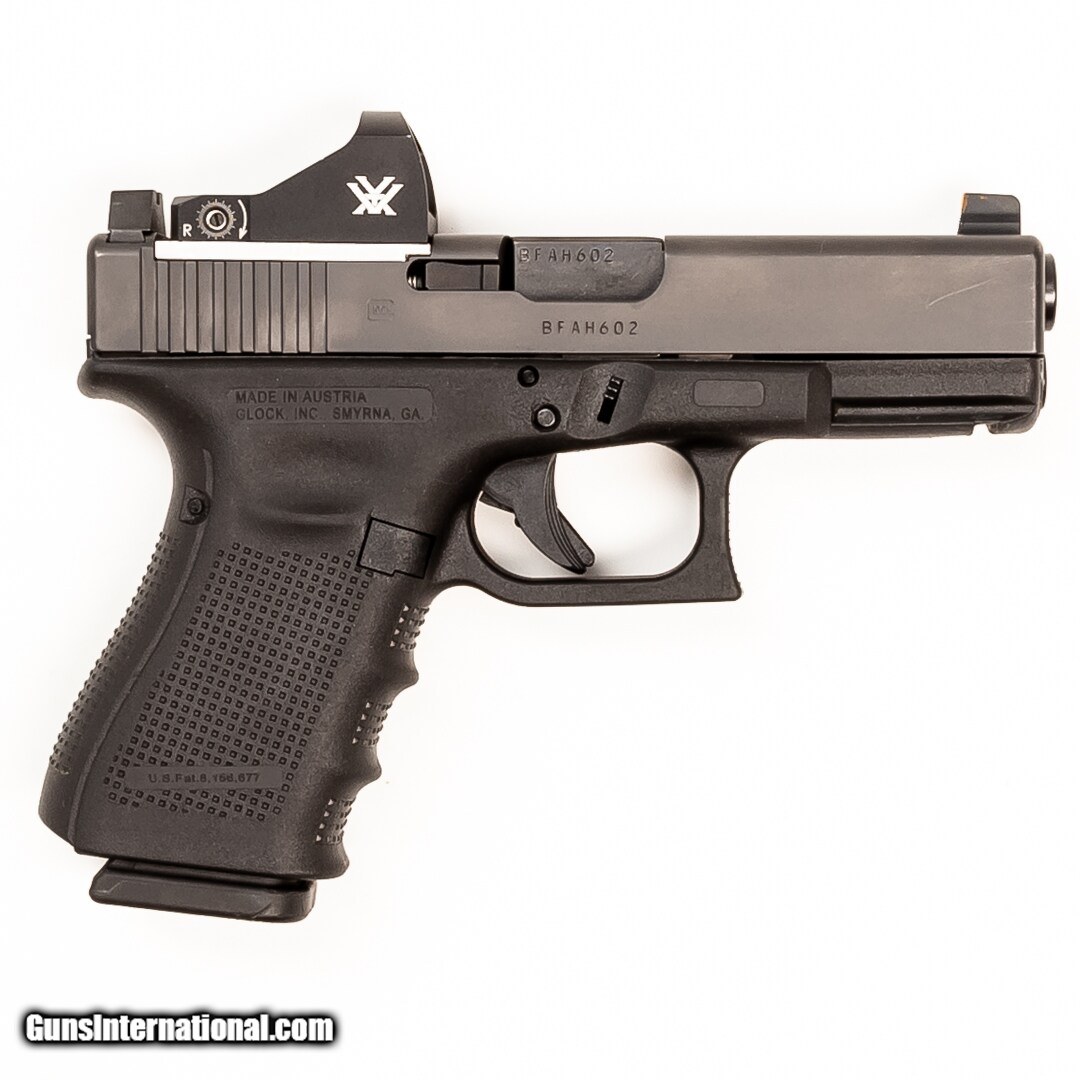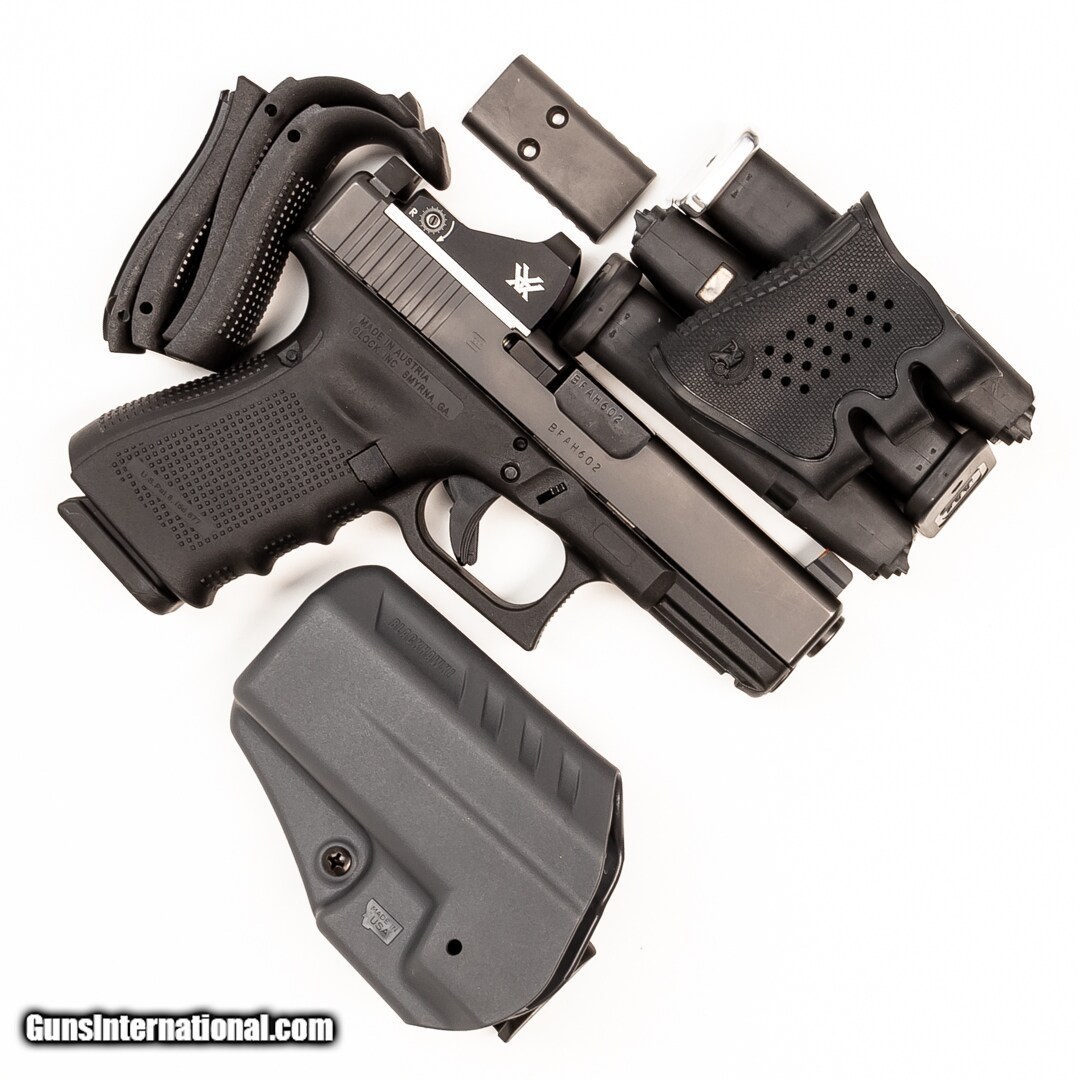 Description: Guns Listing ID: 892200 The Glock 19 is one of the most widely used handguns in the world and is a favorite among militaries, law enforcement agencies, and private citizens. It makes an excellent duty sidearm or self-defense weapon. This G19 Gen 4 is equipped with a Vortex Viper red dot (needs battery). Purchase includes four 15-round magazines, backstraps, a Pachmayr grip sleeve, and an ambidextrous IWB Blackhawk holster. Get the best bang for your buck when you get a Certified Used Firearm . When you see the Certified Used stamp on any of our firearms, you can be confident that you’re getting exactly what you want – a gun only in very good to excellent condition and held to the highest quality standard. All Certified Used Guns come with a ‘no questions asked’ return policy . PLUS, ALL CERTIFIED USED GUNS SHIP FREE! SOLD Model: 19 GEN 4 Caliber Info: 9MM LUGER (9X19 PARA) Condition: Used - Certified Barrels: not specified |