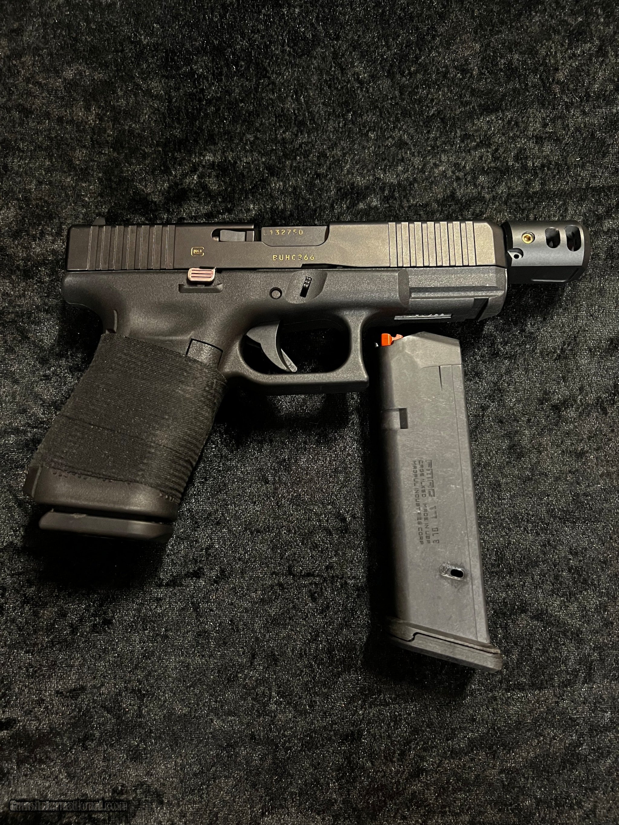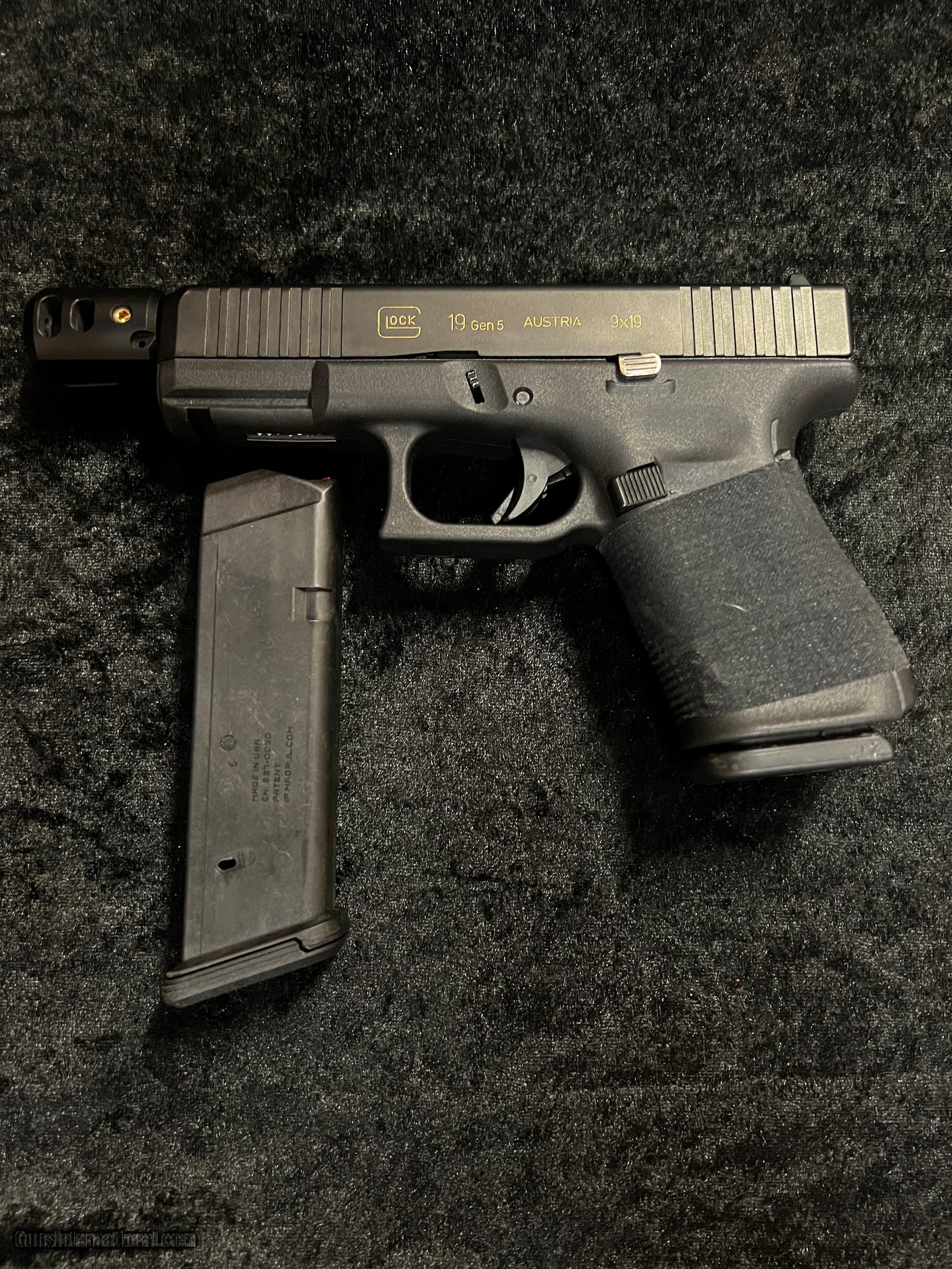 Description: Guns Listing ID: 1073143 The GLOCK 19 - G19 Gen5 9mm Semiautomatic Pistol is constructed with a 5.5-pound trigger, a polymer frame and a 4.02-inch threaded barrel. This centerfire pistol is completed with fixed front and rear sights and topped with a matte finish to reduce wear and minimize light reflections. Gun is in excellent condition, comes with 2 magazines, compensator, and case. SOLD Manufacturer: GLOCK Model: 19 19 Gen 5 Caliber Info: 9MM LUGER (9X19 PARA) Condition: Used - Non-Certified Barrels: 4 BARREL Finish: BLACK |