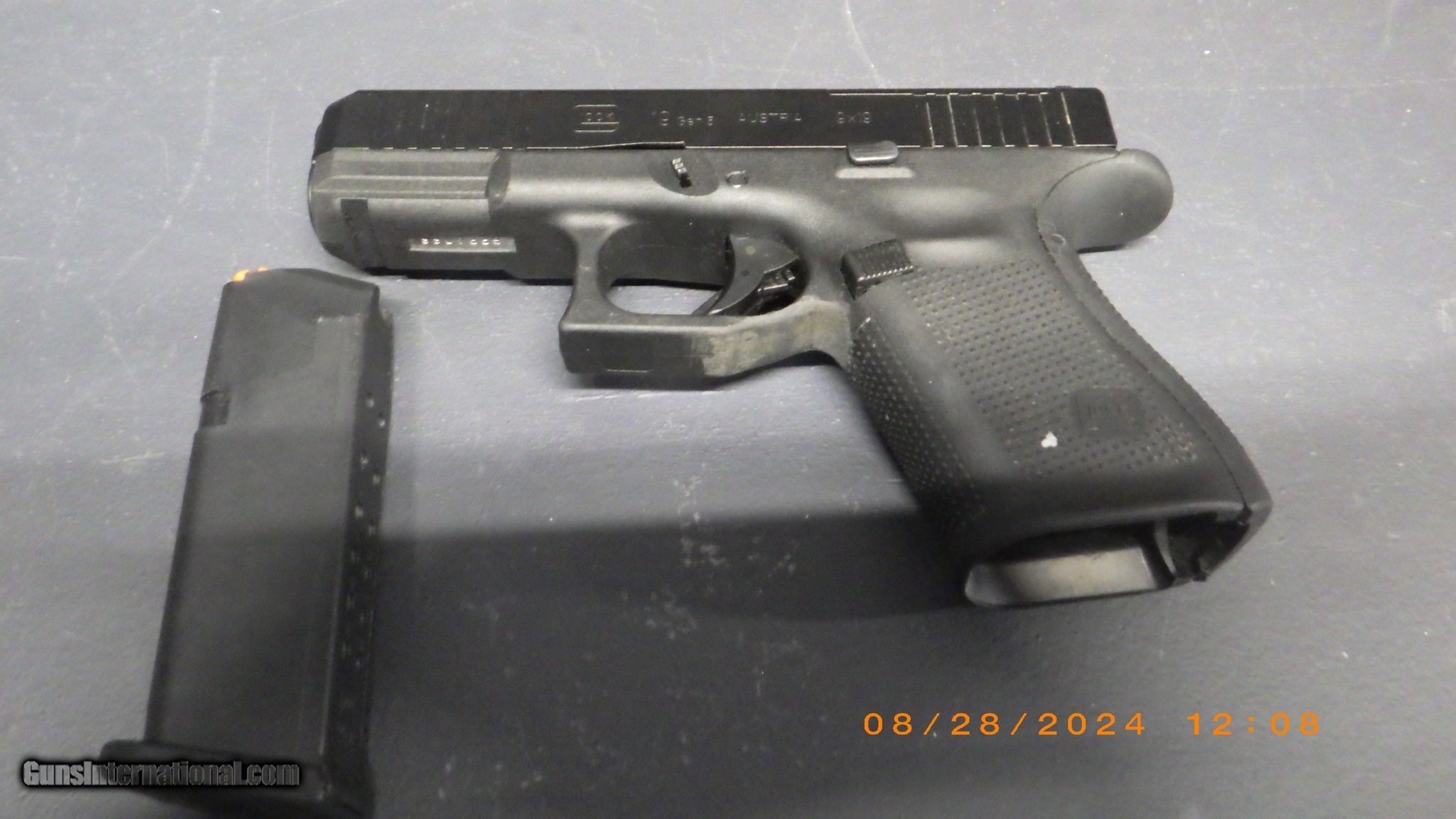 Description: Guns Listing ID: 395273 GLOCK 45 - G19 Gen5 9mm Semiautomatic Pistol Semiautomatic action with a 15-round capacity 4.02-inch barrel with polygonal rifling Polymer frame Front serrations 5.5-pound trigger pull Fixed front sight and fixed rear sight Ambidextrous slide stop levers Trigger, drop and firing pin internal safeties Specifications Trigger pull (lb.): 5.5 Action: Striker Fired Metal finish: Matte Manual Safety: No Activity: Recreational Shooting Barrel length (in.): 4.02 Product Type: Pistol Product weight (lb.): 1.89 Product length (in.): 6.85 Front sight: Fixed Magazine capacity: 15+ Rear sight: Fixed Caliber: 9mm Rifle Ammo Type: Centerfire (TDW034440) SOLD Manufacturer: GLOCK Model: 19 9MM G19 GEN 5 Caliber Info: 9MM LUGER (9X19 PARA) Condition: Used - Non-Certified Barrels: 4 BARREL Action: SEMI AUTOMATIC Finish: BLACK Weight: not specified |
