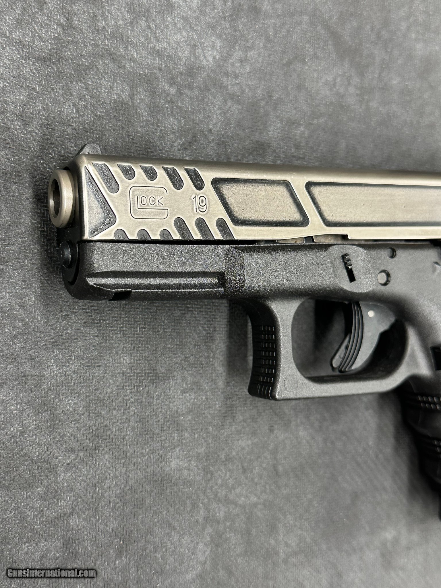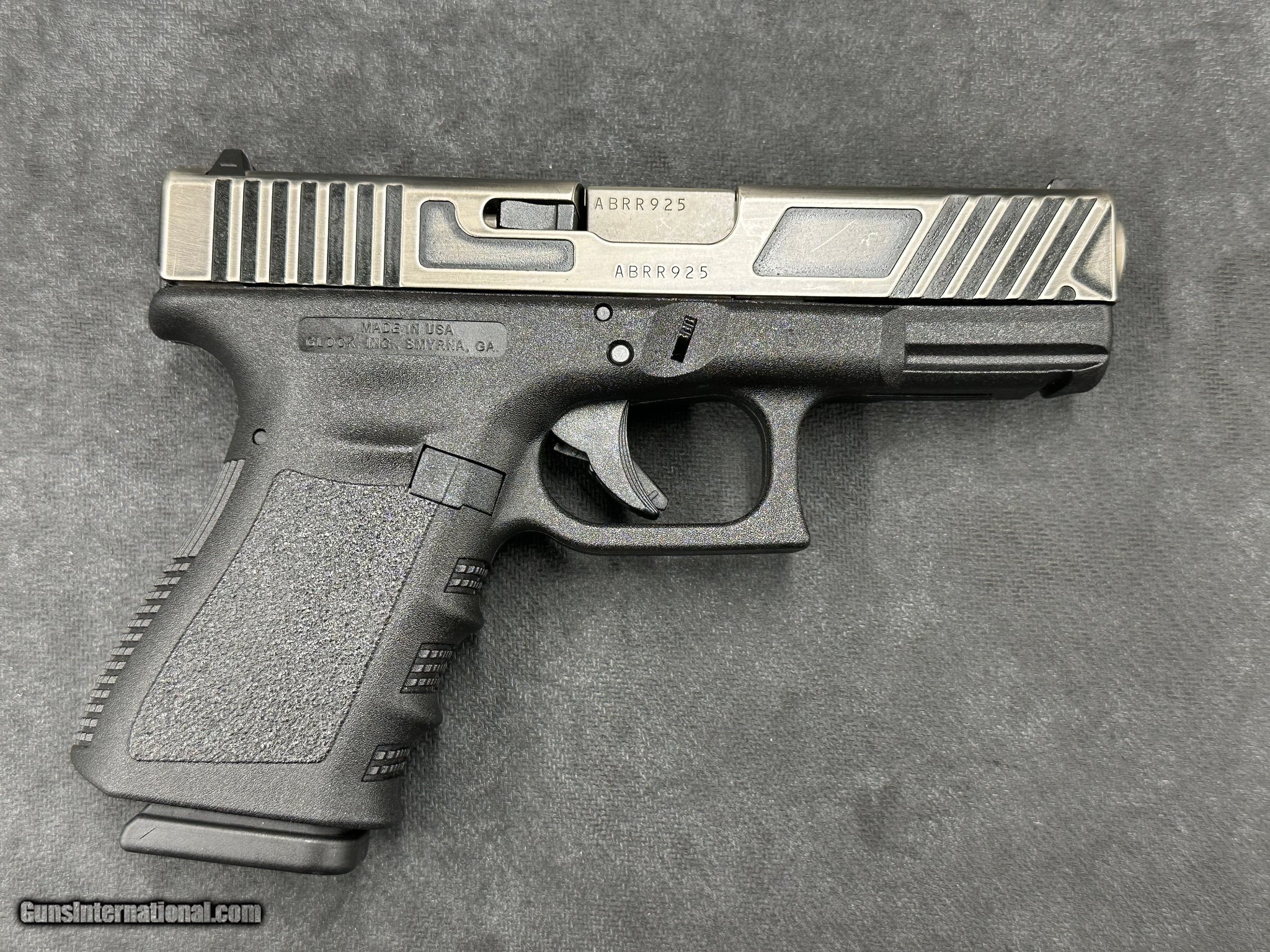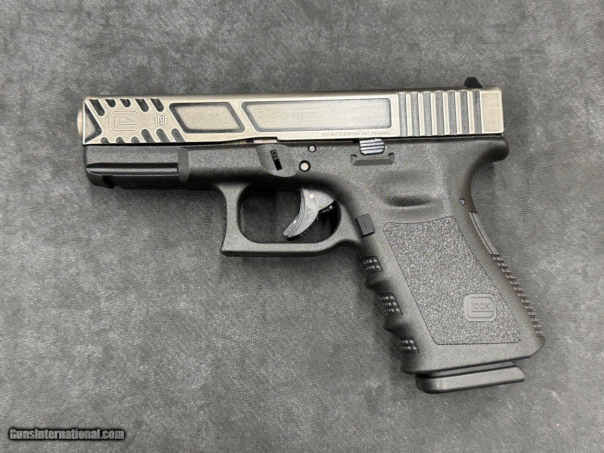 Description: Guns Listing ID: 1277208 Used Glock 19 NIB Battleworn slide. In good condition. SOLD Manufacturer: GLOCK Model: 19 Caliber Info: 9MM LUGER (9X19 PARA) Condition: Used - Non-Certified Barrels: 4 BARREL Finish: TWO TONE BLACK AND STAINLESS |