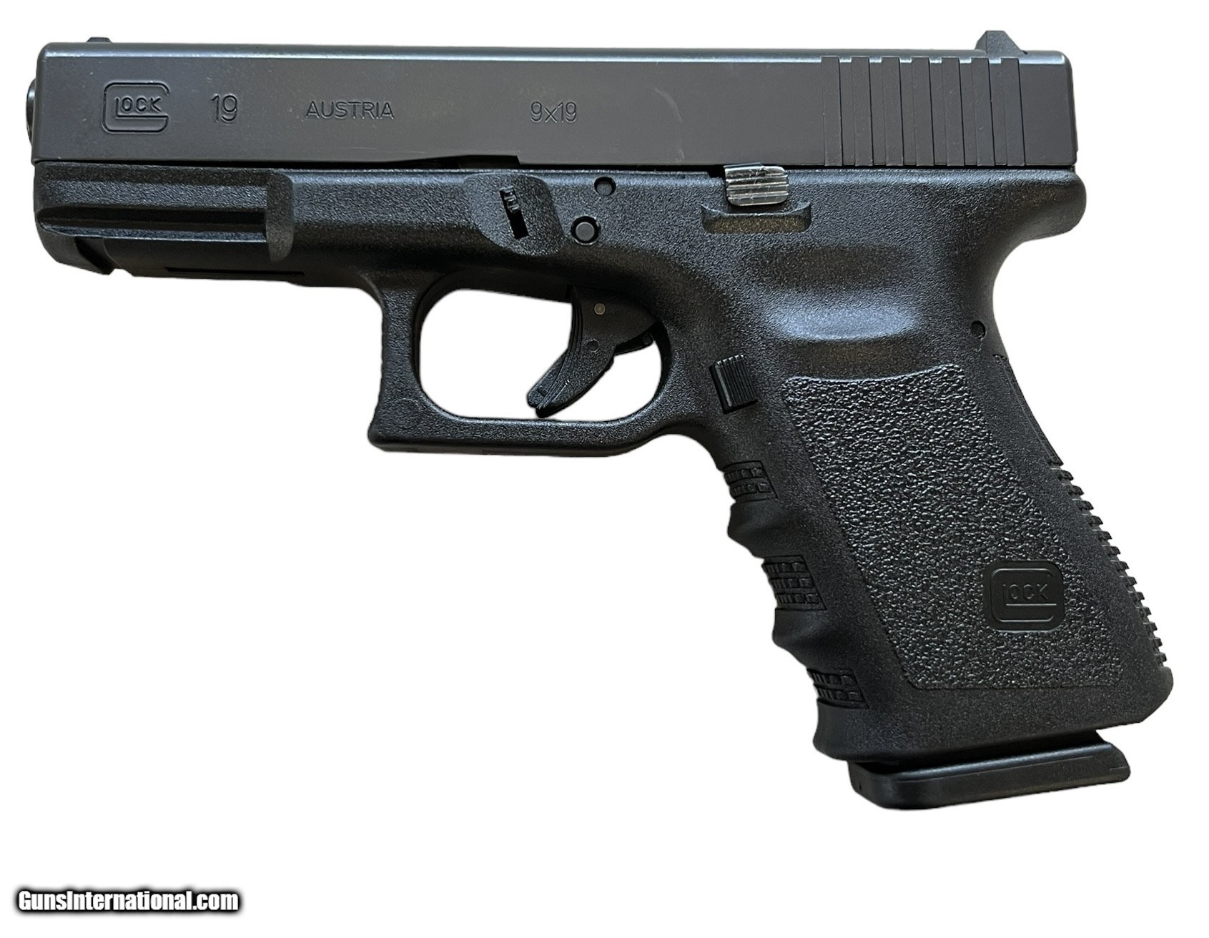 Description: Guns Listing ID: 374882 Manufacturer: Glock Importer: Glock Model: 19 Type: Handgun Action Type: Semi-Automatic Caliber / Gauge: 9 MM Finish: Black Barrel Type: Single Grip Type: Polymer Barrel Length: 4\" Magazine Capacity: 15 Magazine Quantity: 1 Case Type: Case - Hard Condition: Used SOLD Manufacturer: GLOCK Model: 19 Caliber Info: 9MM LUGER (9X19 PARA) Condition: Used - Non-Certified Barrels: 4 BARREL Action: SEMI AUTOMATIC Finish: BLACK Weight: not specified |
