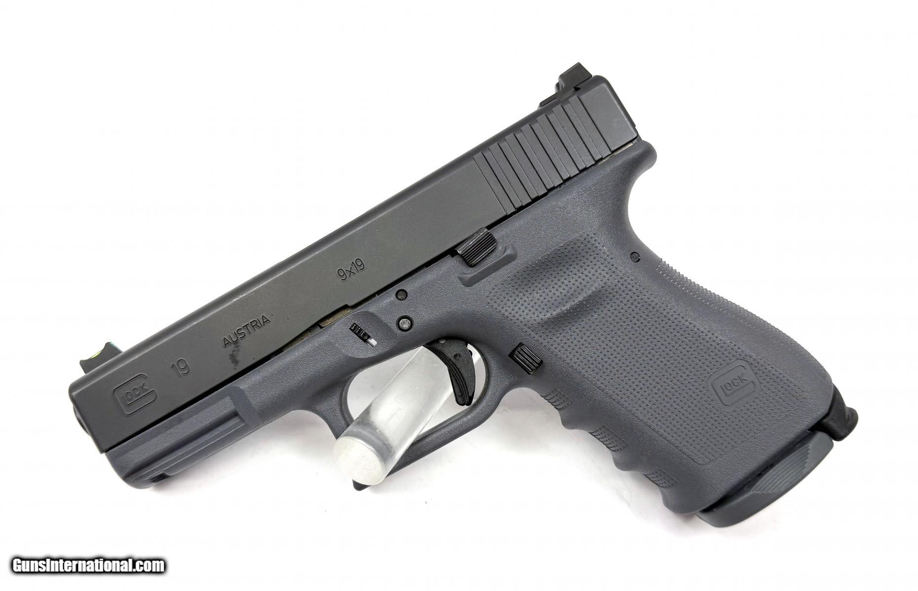 Description: Guns Listing ID: 528999 Glock 19 GF RTF2 9X19mm, 4.02\" Barrel, Gray Frame, Green Fiber Front Sight w/ Black U-Notch Rear, Extended Mag Catch, Two 15rd Magazines, Original Box SOLD Manufacturer: GLOCK Model: 19 Caliber Info: 9MM LUGER (9x19 PARA) Condition: Used - Non-Certified Barrels: 4.02 Action: SEMI AUTOMATIC |