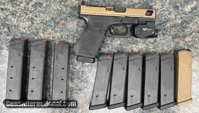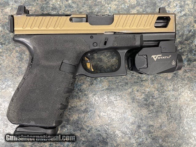 Description: Guns Listing ID: 569031 GLOCK 19 SEMI AUTO 9MM WITH 4.02\" BARREL, 10 MAGS, AND VOTATU HL10 LIGHT W/CHARGER IN USED CONDITION. SOLD Manufacturer: GLOCK Model: 19 Caliber Info: 9MM LUGER (9x19 PARA) Condition: Used - Non-Certified Barrels: 4.02" BARREL Action: SEMI AUTOMATIC Finish: BLACK AND BRONZE |