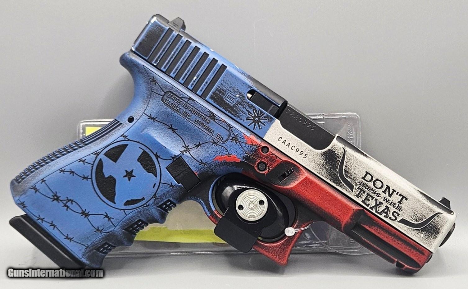 Description: Guns Listing ID: 581088 This is a Glock 19 9mm handgun in VERY GOOD condition with some cosmetic damage. It has a professional Texas paint job with Texas theme symbols all around the firearm. It includes two 15-round magazine and its original Glock carrying hard case. This versatile polymer-framed pistol offers a reduced size without sacrificing magazine capacity. The modular backstrap system allows the user to easily customize this handgun to fit their hand size, while the textured grips and finger grooves ensure a firm grasp through every shot fired. A reversible magazine catch makes it ideal for left- and right-handed users and an integral rail means easy mounting of accessories. Specifications: Manufacturer Glock Model 19 Submodel Gen4 Caliber 9mm Luger Overall Condition Very Good Bore Condition Excellent Action Striker Capacity 15 + 1 0451227-TMM-LM Manufacturer: GLOCK Model: 19 Caliber Info: 9MM LUGER (9x19 PARA) Condition: Used - Non-Certified Barrels: 4" BARREL Action: SEMI AUTOMATIC Finish: custom Price: $699.99 Contact Seller |