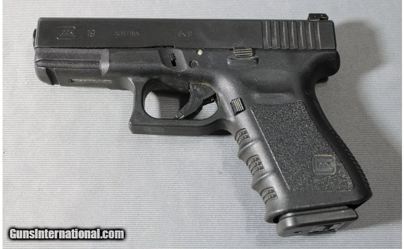 Description: This Glock 19 comes with two magazines and a mag loader. Finish is good showing little wear. 9mm Luger SOLD Metal Condition: good Bore Condition: bright Barrels: 4" barrel Weight: 1 lb 6 ozs Sights: factory sights Item Location: Council Bluffs, IA |