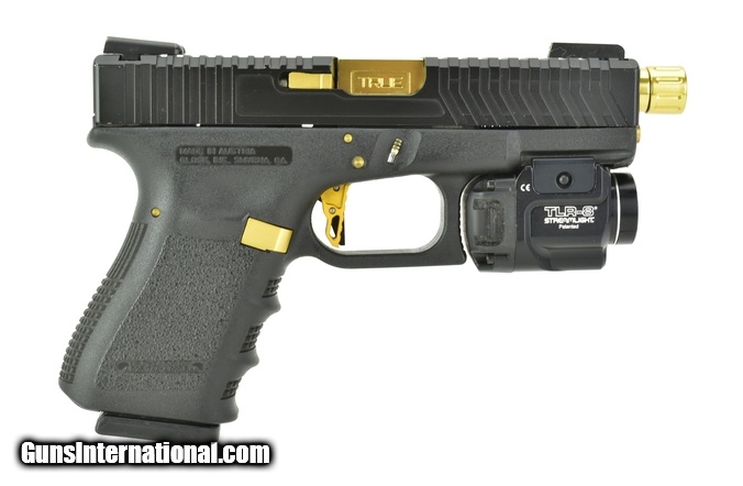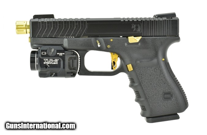 Description: Glock 19 9mm caliber pistol. Customized compact model with upgrade slide, barrel and parts. Has a Streamlight TLR-8.
