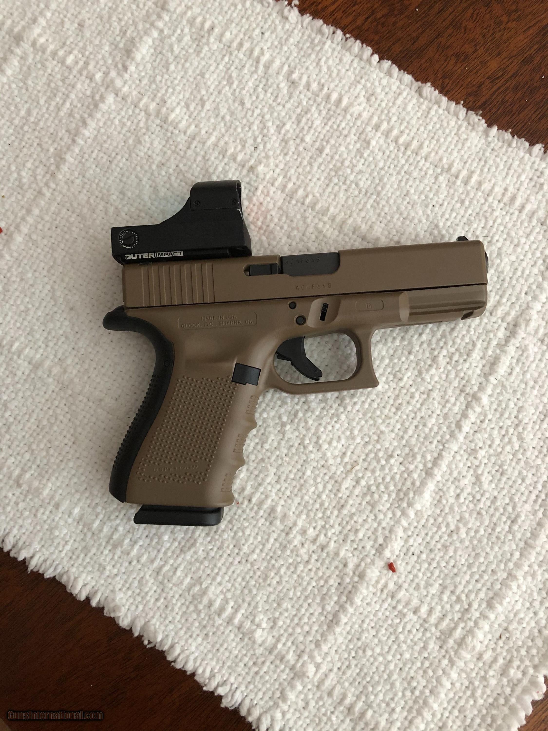 Description: For sale is my Glock 19. 9 mm with box, 5 magazines and red dot site SOLD Handgun Caliber: 9x19mm Parabellum (9mm Luger, 9x19mm NATO) Condition: Excellent |