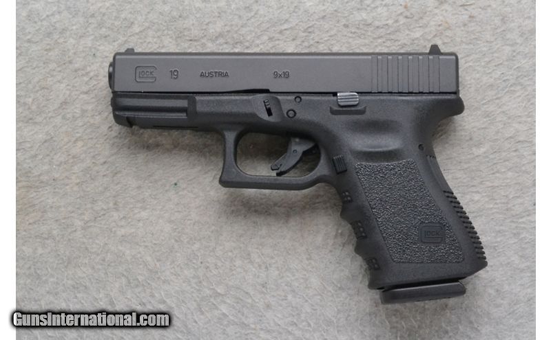 Description: This Glock Model 19 is a right hand semi-auto pistol in 9mm Cal. It has a 4 inch barrel with a rear serrated slide. A blade front sight and notch rear sight. The grip is a textured and checkered black polymer with molded finger grooves. It has a lower accessory rail. 9mm Parabellum SOLD Chambers: 15 round magazine. Metal Condition: Excellent. Bore Condition: Excellent. Barrels: 4 inch barrel with a rear serrated slide. Weight: 24 oz. Sights: Blade front. Notch rear. Item Location: Richfield, WI |