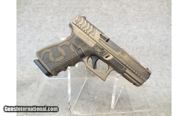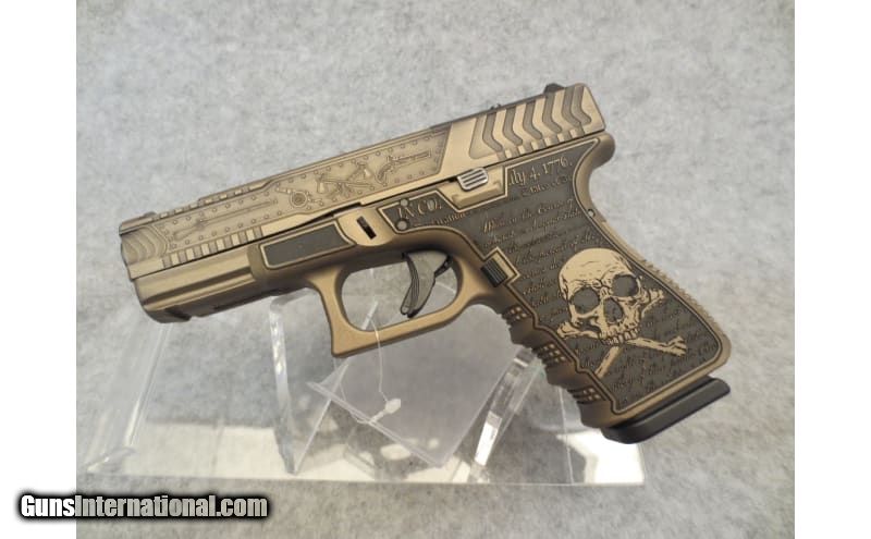 Description: Very nice Glock 19 with a patriotic theme, cerakoting looks good, no blemishes, no damage. 9mm Luger SOLD Chambers: 1 Metal Condition: Very Good Barrels: 1 Weight: 28 ounces Sights: Iron Item Location: Woodbury, MN |