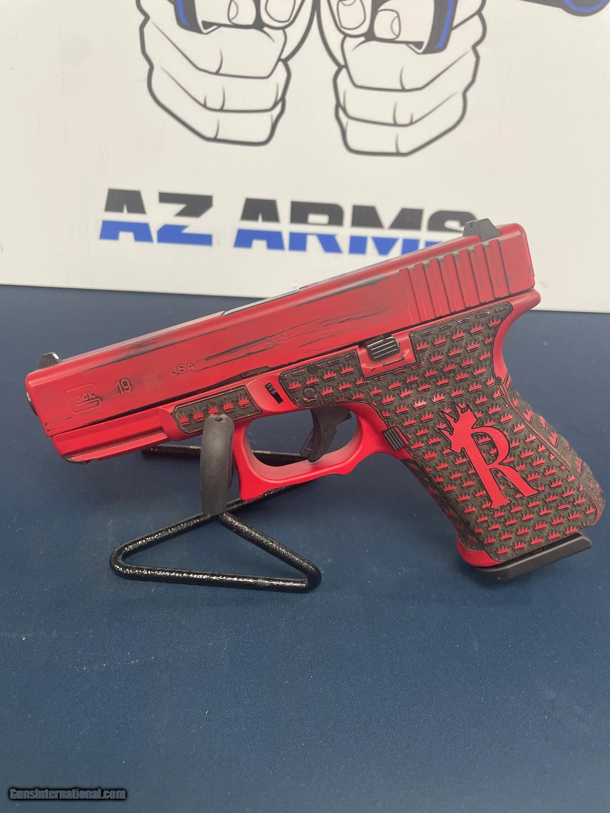 Description: Guns Listing ID: 822779 Brand new custom cerakote red battle worn Smoke Em” laser engraved SOLD Manufacturer: GLOCK Model: 19 G19 GEN 3 9MM Caliber Info: 9MM LUGER (9X19 PARA) Condition: Used - Non-Certified Barrels: 4 BARREL Finish: RED |