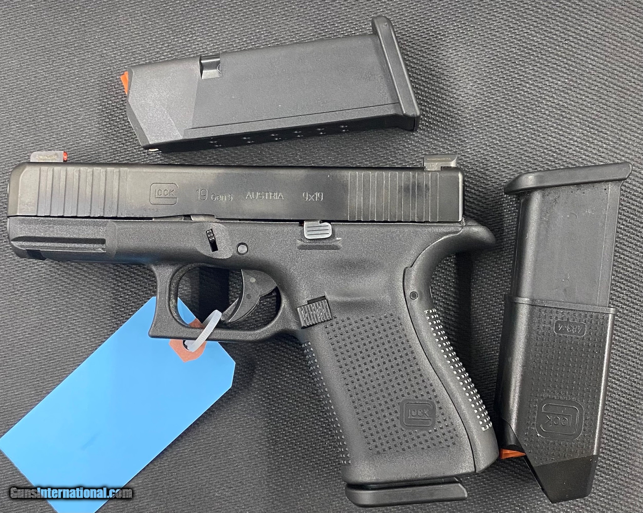 Description: Guns Listing ID: 484475 Glock 19 Gen 5 with three 15 round factory magazines. Also has night sights, original box and papers. SOLD Manufacturer: GLOCK Model: 19 G19 GEN 5 9MM PA195S203 Caliber Info: 9 MM LUGER (9X19 PARA) Condition: Used - Non-Certified Barrels: 4 BARREL |