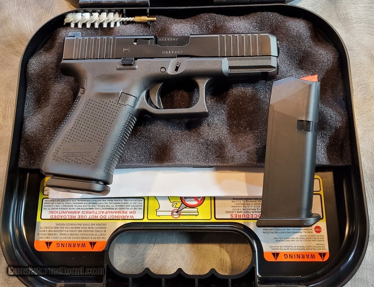 Description: Guns Listing ID: 372005 This is a very lightly used firearm that is in excellent condition. This pistol comes with 2 15rd magazines as well as the original case. This model also comes with tritium filled 3 dot sights instead of the Glock basket sights. The GLOCK 19 Gen5 pistol in 9mm Luger is ideal for a more versatile role due to its reduced dimensions. The new frame design without finger grooves still allows to instantly customize its grip to accommodate any hand size by mounting the different back straps. The reversible magazine catch and ambidextrous slide stop lever make it ideal for left and right-handed shooters. The rifling and the crown of the barrel were slightly modified for increased precision. SOLD Manufacturer: GLOCK Model: 19 G19 Gen 5 Caliber Info: 9X19 Condition: Used - Non-Certified Barrels: 4.02 BARREL Finish: BLACK |