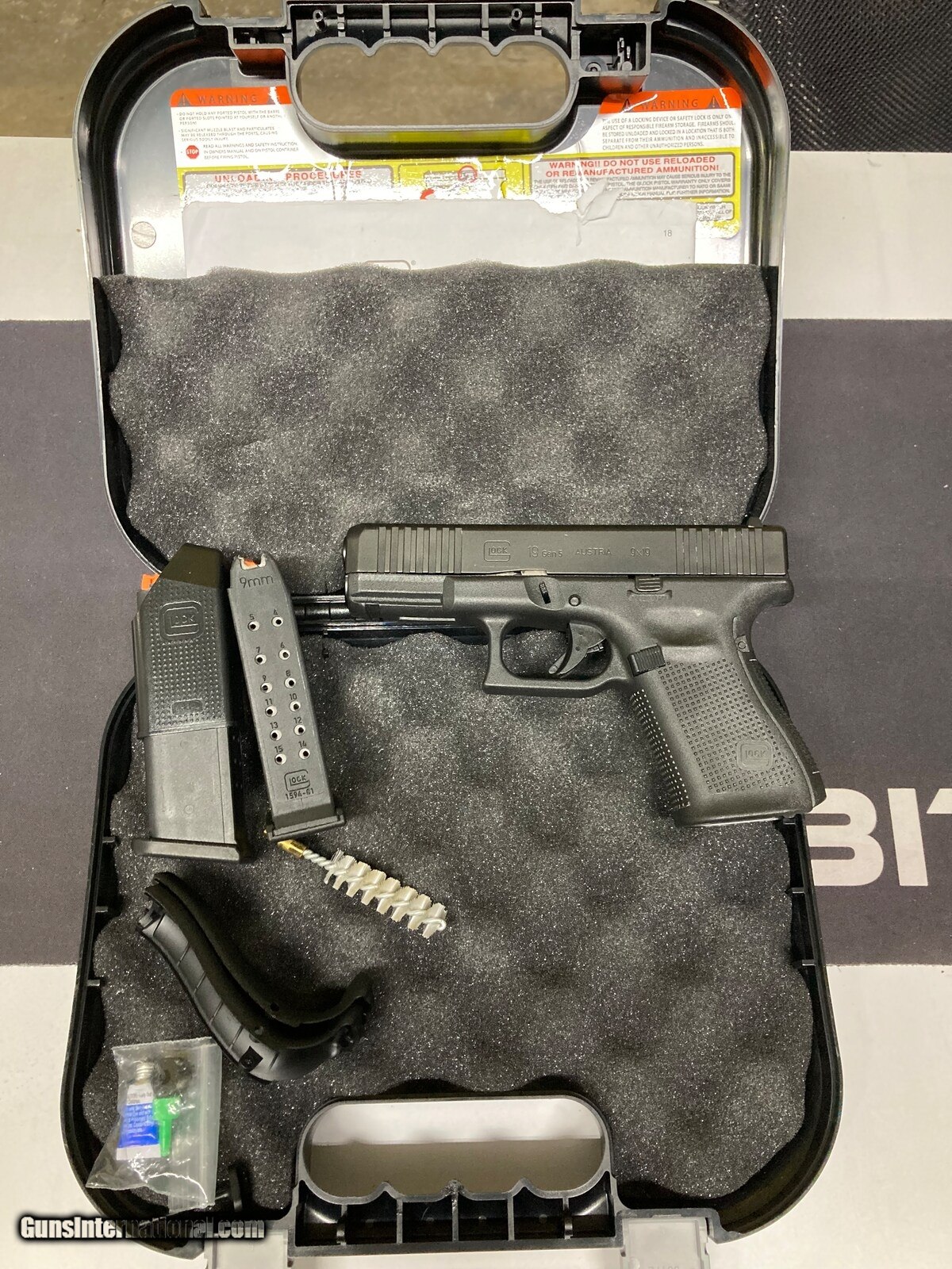 Description: Guns Listing ID: 720803 *** PRE-OWNED / IN VERY GOOD CONDITION *** . \" GLOCK 19 GEN.5, 9MM SEMI-AUTO PISTOL -ALL BLACK \" \" COMES WITH ORIGINAL GLOCK CASE AND TWO MAGAZINES \" . \" SEE ALL PHOTOS \" . \" ALL FIREARMS ARE INSPECTED BY A CERTIFIED GUNS-SMITH & NRA INSTRUCTOR \" (ITEM CODE:G-2008548-1) SOLD Manufacturer: GLOCK Model: 19 G19 Gen 5 Caliber Info: 9MM LUGER (9X19 PARA) Condition: Used - Non-Certified Barrels: 4 BARREL Finish: BLACK ANODIZED |