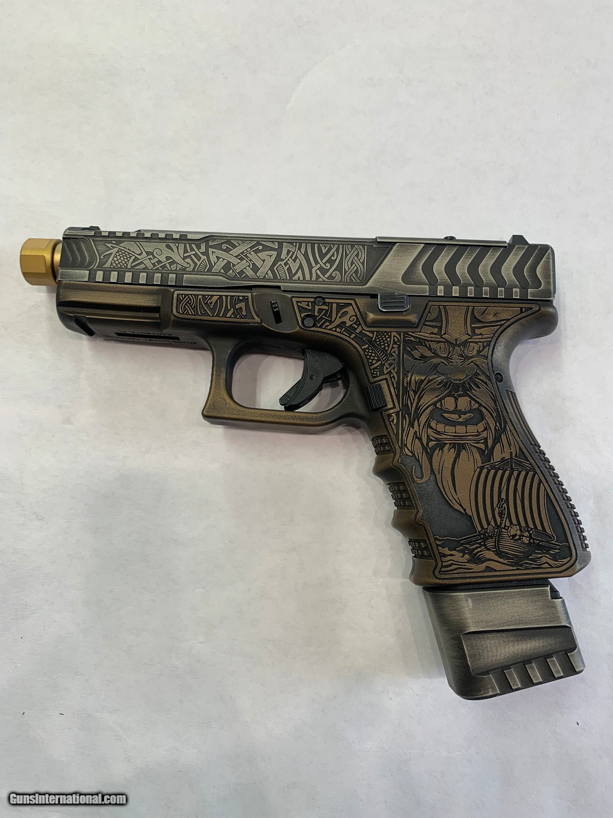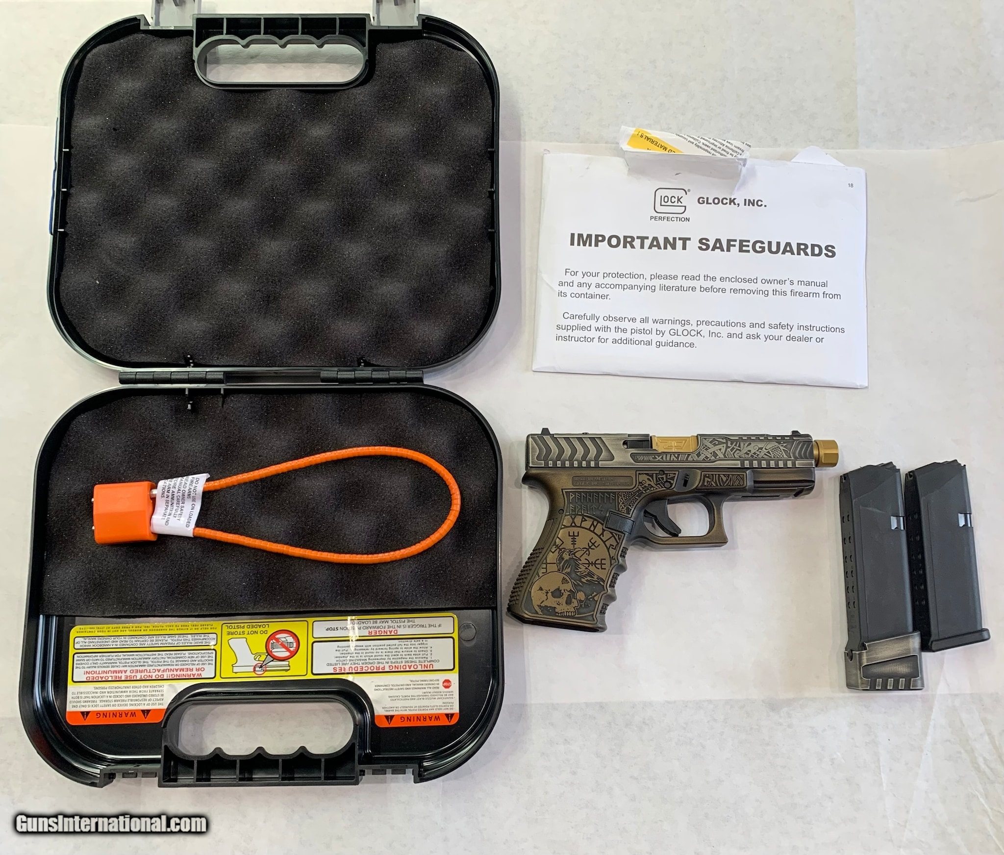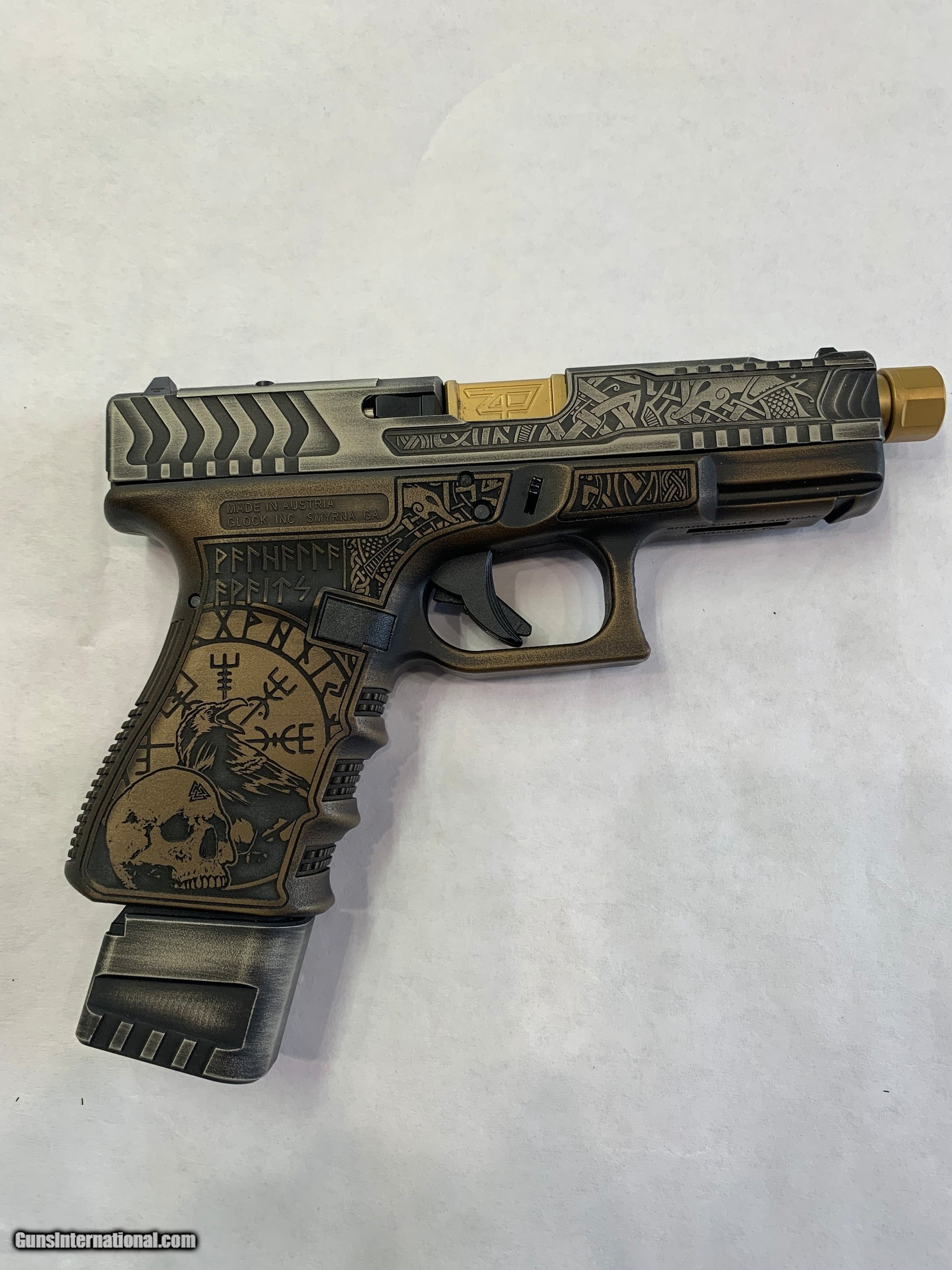 Description: Guns Listing ID: 1126024 This Gen 3 Glock 19 MOS w/ threaded barrel (AKA The “VIKING”) is chambered in 15 rounds of 9mm. It comes with its original case, paperwork, gun lock, 1 regular 15 round magazine, and 1 custom 15 round (pinky extension) magazine. SOLD Manufacturer: GLOCK Model: 19 GEN 3 Caliber Info: 9MM LUGER (9X19 PARA) Condition: Used - Non-Certified Barrels: 5 BARREL Finish: CUSTOM |