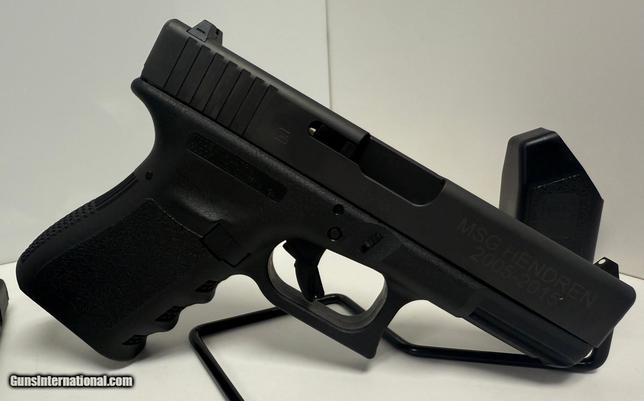 Description: Guns Listing ID: 462502 GLOCK 19 GEN 3 - 9MM LUGER (9X19 PARA) - 15 ROUNDS - 4\" BARREL PISTOL GREAT used condition - NOTE: ENGRAVING ON SIDE OF PISTOL. See photos for details. Included: pistol, 2 magazines & case (one latch is missing off case). SOLD Manufacturer: GLOCK Model: 19 GEN 3 Condition: Used - Non-Certified Barrels: 4 Gauge Info: 9MM LUGER (9x19 PARA) Finish: black |