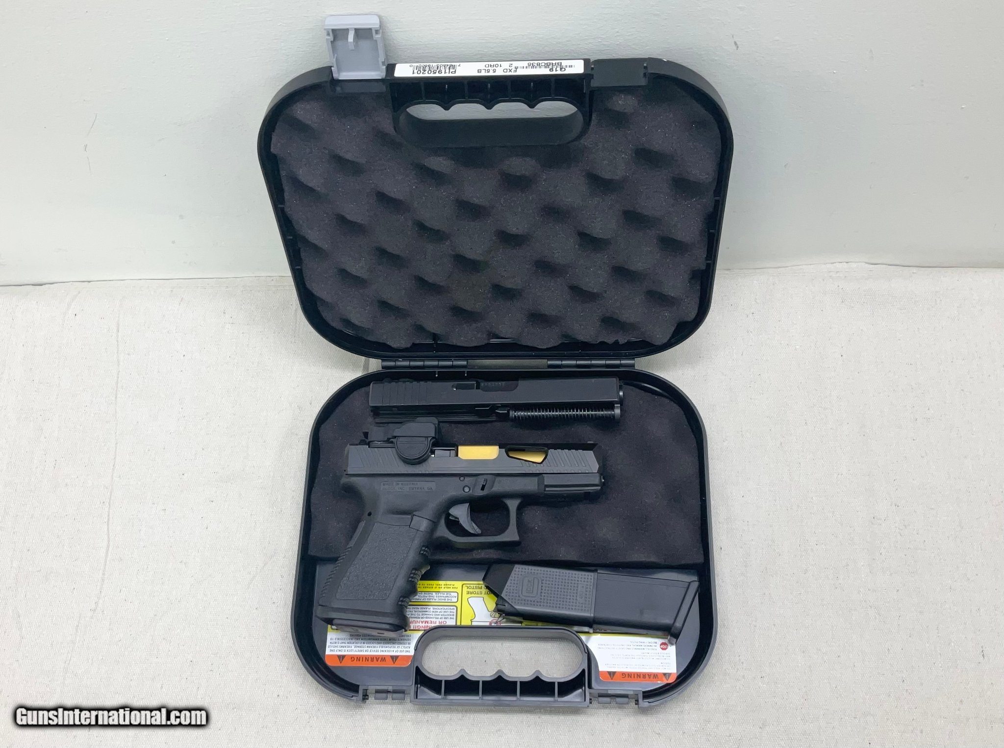 Description: Guns Listing ID: 481180 Includes box, one 15-round magazine, one 17-round magazine, AimSurplus RMR Black Nitride slide, VISM FlipDot Pro red dot sight, custom barrel, and custom backplate. See photos for condition. SOLD Manufacturer: GLOCK Model: 19 GEN 3 Caliber Info: 9MM LUGER (9x19 PARA) Condition: Used - Non-Certified Barrels: 4 BARREL Finish: black matte |