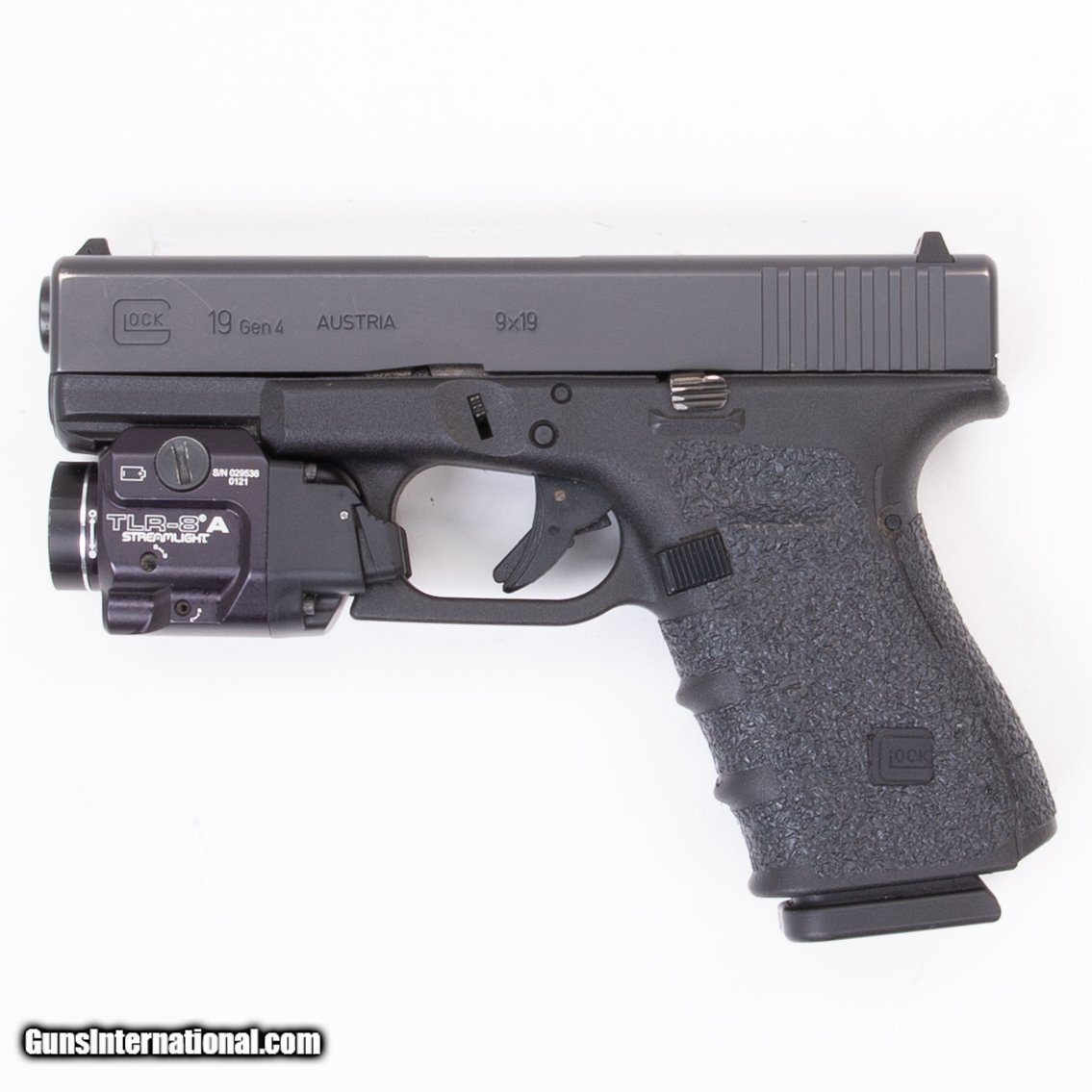 Description: Guns Listing ID: 474572 This Glock G19 Gen 4 features grip tape and a Streamlight TLR-8 A. It includes the original case, owner‚‚s manual, two 15-round magazines, and backstraps. Get the best bang for your buck when you get a Certified Used Firearm . When you see the Certified Used stamp on any of our firearms, you can be confident that you‚‚re getting exactly what you want – a gun only in very good to excellent condition and held to the highest quality standard. All Certified Used Guns come with a ‚‚no questions asked‚‚ return policy . PLUS, ALL CERTIFIED USED GUNS SHIP F SOLD Manufacturer: GLOCK Model: 19 GEN 4 Caliber Info: 9MM LUGER (9x19 PARA) Condition: Used - Certified Barrels: 4.00 Action: SEMI AUTOMATIC Finish: BLACK Weight: 1.6 |