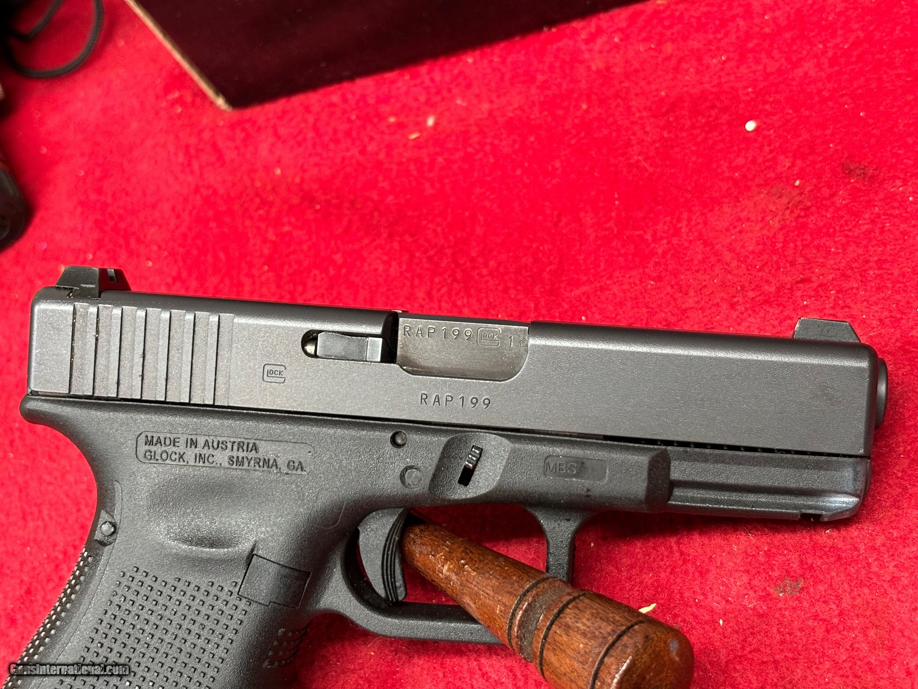 Description: Glock 19 Gen 4 9mm LIKE NEW IN THE BOX. She is a Police Trade-In. Box......nite sights......3 mags $429.00 $26.00 to ship If you are WEST of the Mississippi shipping will be $10.00 extra Thank you for looking at our items. If it is listed on the site, we still have it in the shop. If you wish to buy, hit buy it now and call the shop to pay. We are open Monday thru Friday 10:00am-3:00pm EST ...........Ask for Bree....... (803) 874-1060. Please CALL the shop first if you are in California. You need to verify you can have this weapon, since we DO NOT accept returns from California. THERE IS A 3.5% CARD FEE. NO INTERNATIONAL SALES SOLD Handgun Caliber: 9x19mm Parabellum (9mm Luger, 9x19mm NATO) |