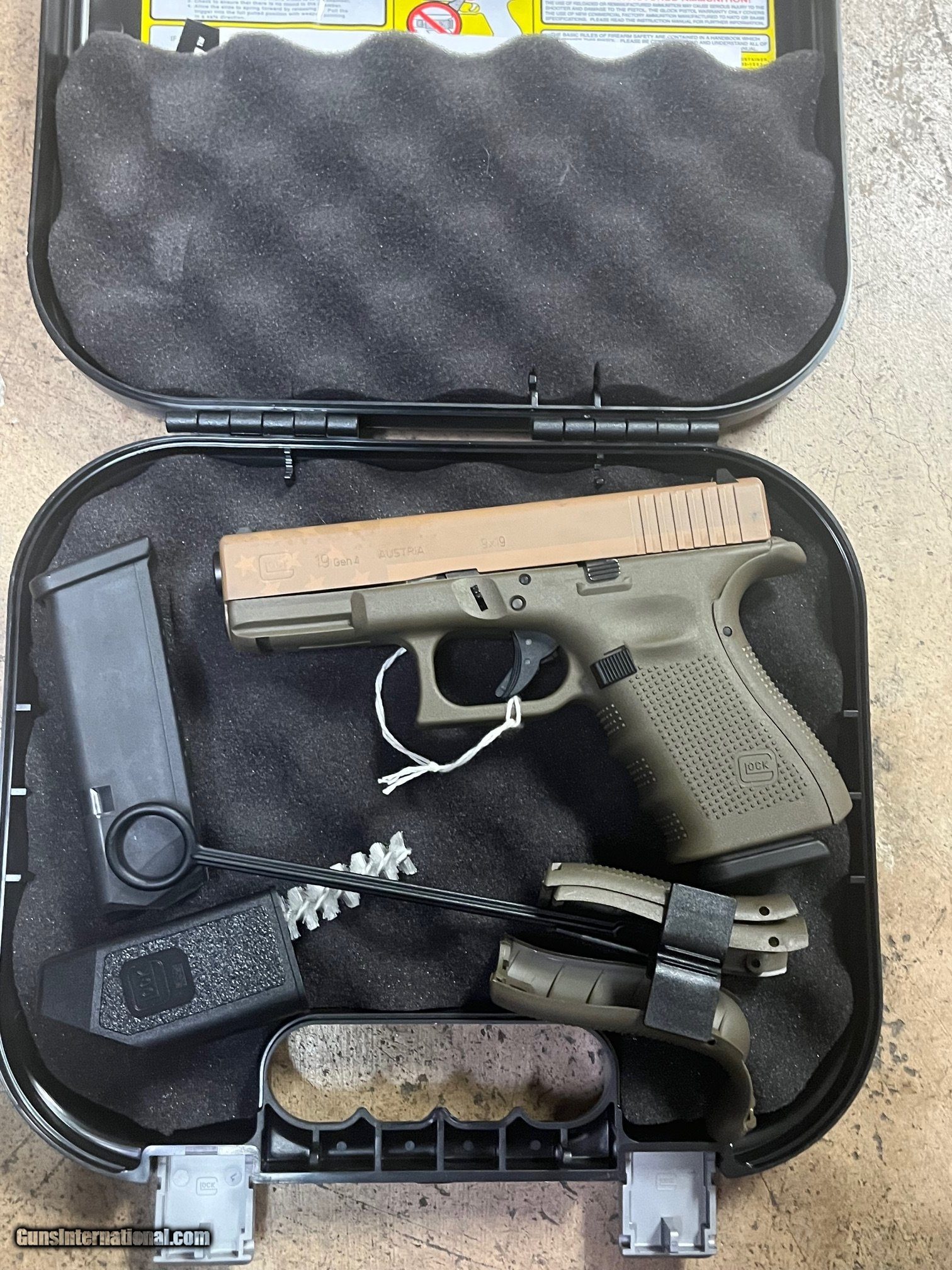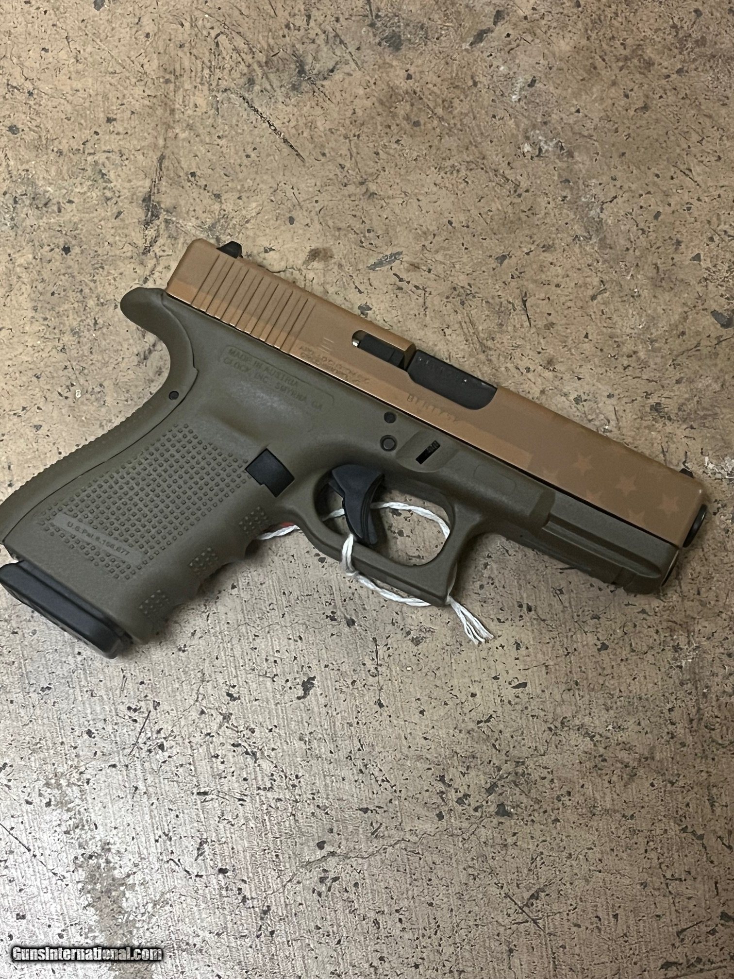Description: Guns Listing ID: 491026 Glock 19 Gen 4 Comes with one extra mag and back straps Apollo custom inc cerakote work OD Green frame with American flag pattern tan slide SOLD Manufacturer: GLOCK Model: 19 Gen 4 American Flag Caliber Info: 9MM LUGER (9x19 PARA) Condition: Used - Non-Certified Barrels: 4 Finish: desert tan |