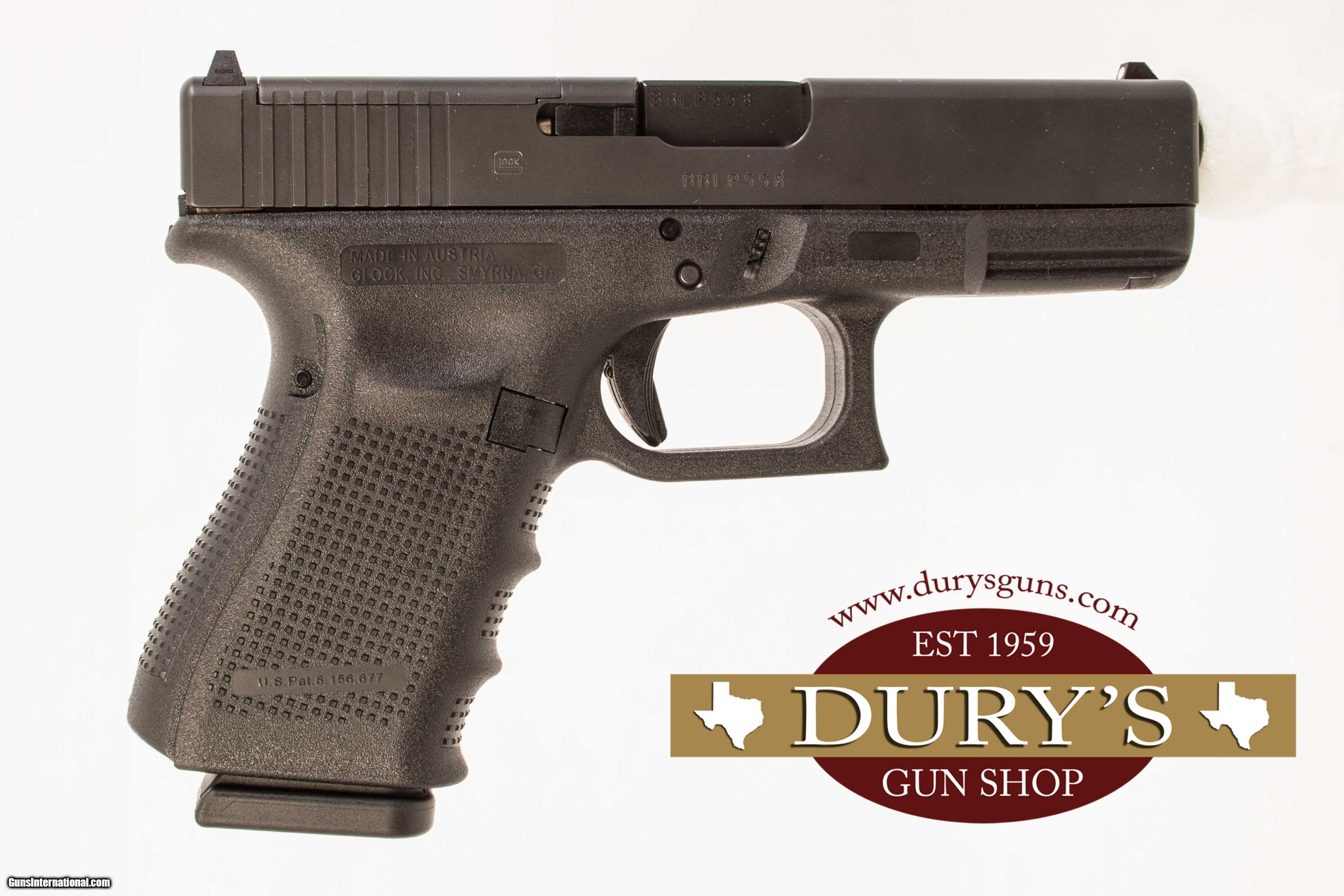 Description: Glock 19 Gen 4 MOS chambered in 9mm with a 4 inch barrel with a bright bore good grooves original case and 2 extra magazines. This gun is in excellent condition and is covered by Dury's Lifetime Warranty.