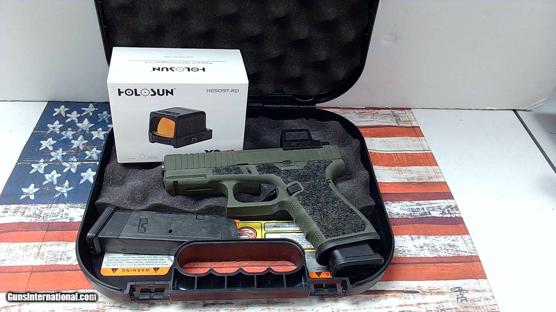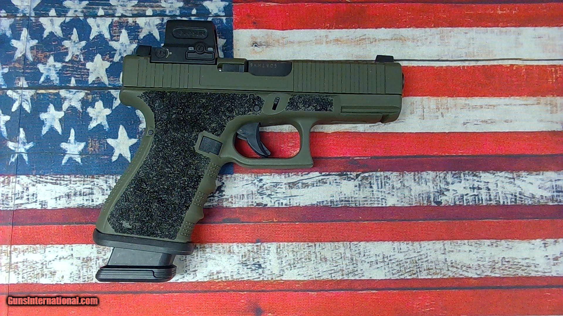 Description: Guns Listing ID: 1323194 This is a very customized Glock. It is a Gen 4 9mm with a customized 911 slide from Legion Precision. The entire firearm has been cerekoted to OD Green. The grip has stippling tape and it‚‚s topped off with a Holosun 509T-RD red dot. Firearm has Magpul mag well and two 10 round PMAG magazines. (magazines slightly stick out of the bottom.) These photos represent the exact firearm for sale. As with many used firearms, this item may contain scratches and/or signs of wear. This is not always the case but should not be unexpected SOLD Manufacturer: GLOCK Model: 19 Gen 4 UPGRADED Caliber Info: 9MM LUGER (9X19 PARA) Condition: Used - Non-Certified Barrels: 4.5 BARREL Finish: OD GREEN |