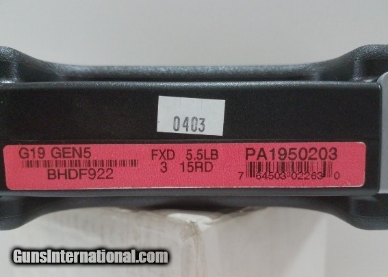 Description: Glock 19 Gen 5 9mm G19 G5 15+1 PA1950203 FS G19 G5 - Used SOLD |