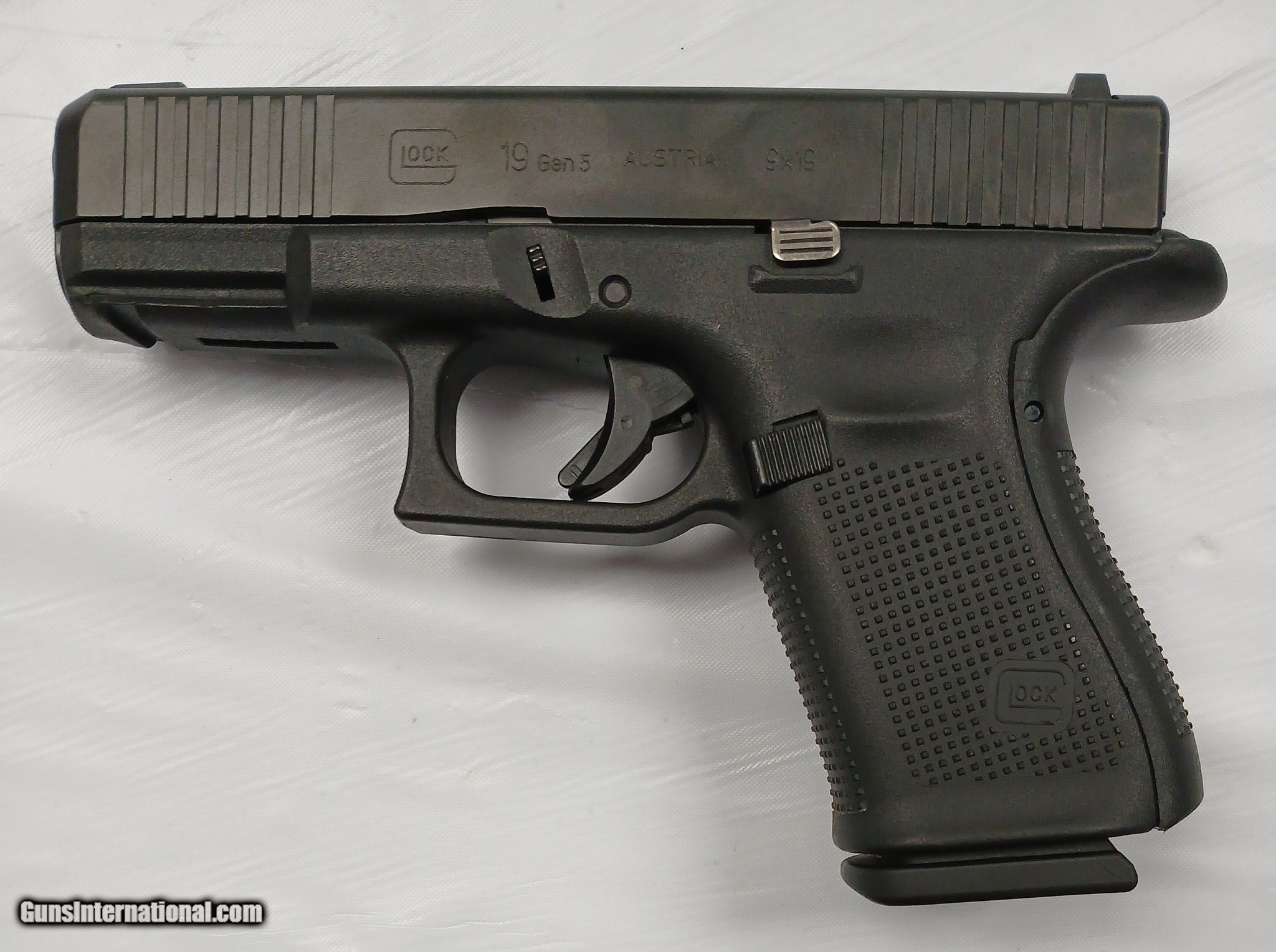 Description: Guns Listing ID: 477697 In good condition, comes with two back grips, magazine and a hard case, take a look at the pictures for reference! SOLD Manufacturer: GLOCK Model: 19 Gen 5 Condition: Used - Non-Certified Barrels: 3.812 Gauge Info: 9MM LUGER (9x19 PARA |