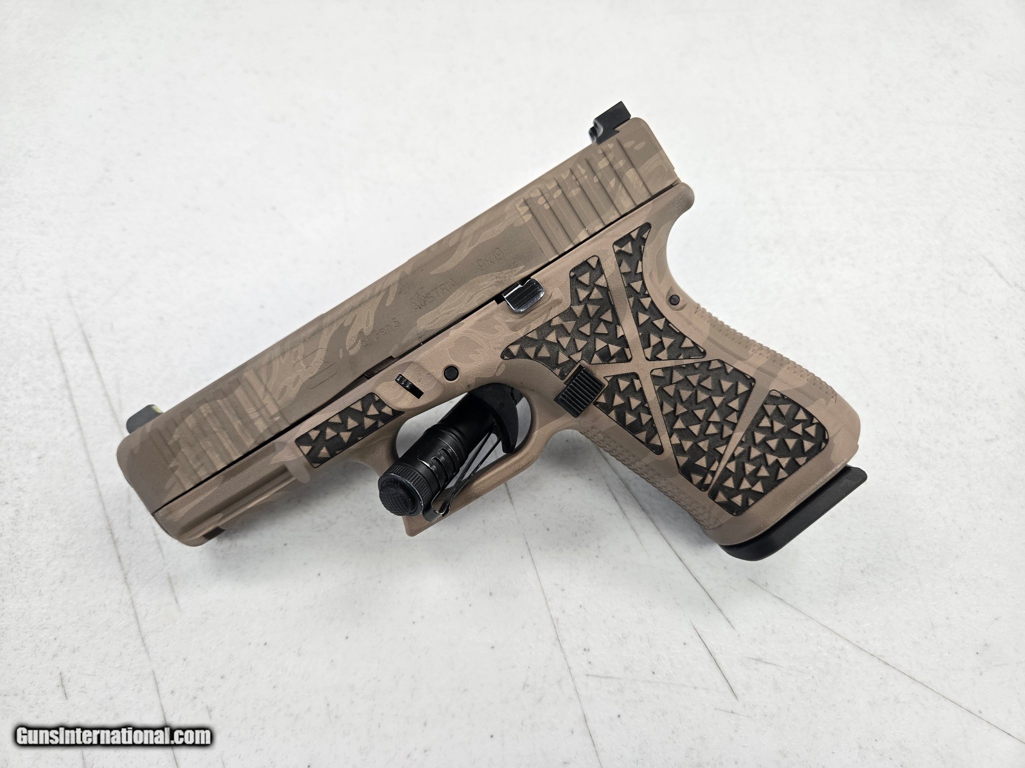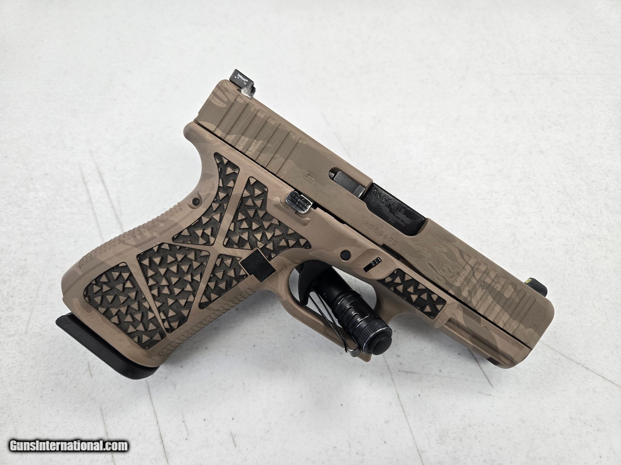 Description: Guns Listing ID: 482715 Normal wear and tear, laser stippled grip, custom cerakote camo, 3 magazines, Trijicon HD XR night sights. SOLD Manufacturer: GLOCK Model: 19 GEN 5 Condition: Used - Non-Certified Barrels: 4.02 BARREL Gauge Info: 9MM LUGER (9x19 PARA) Finish: tan and black |