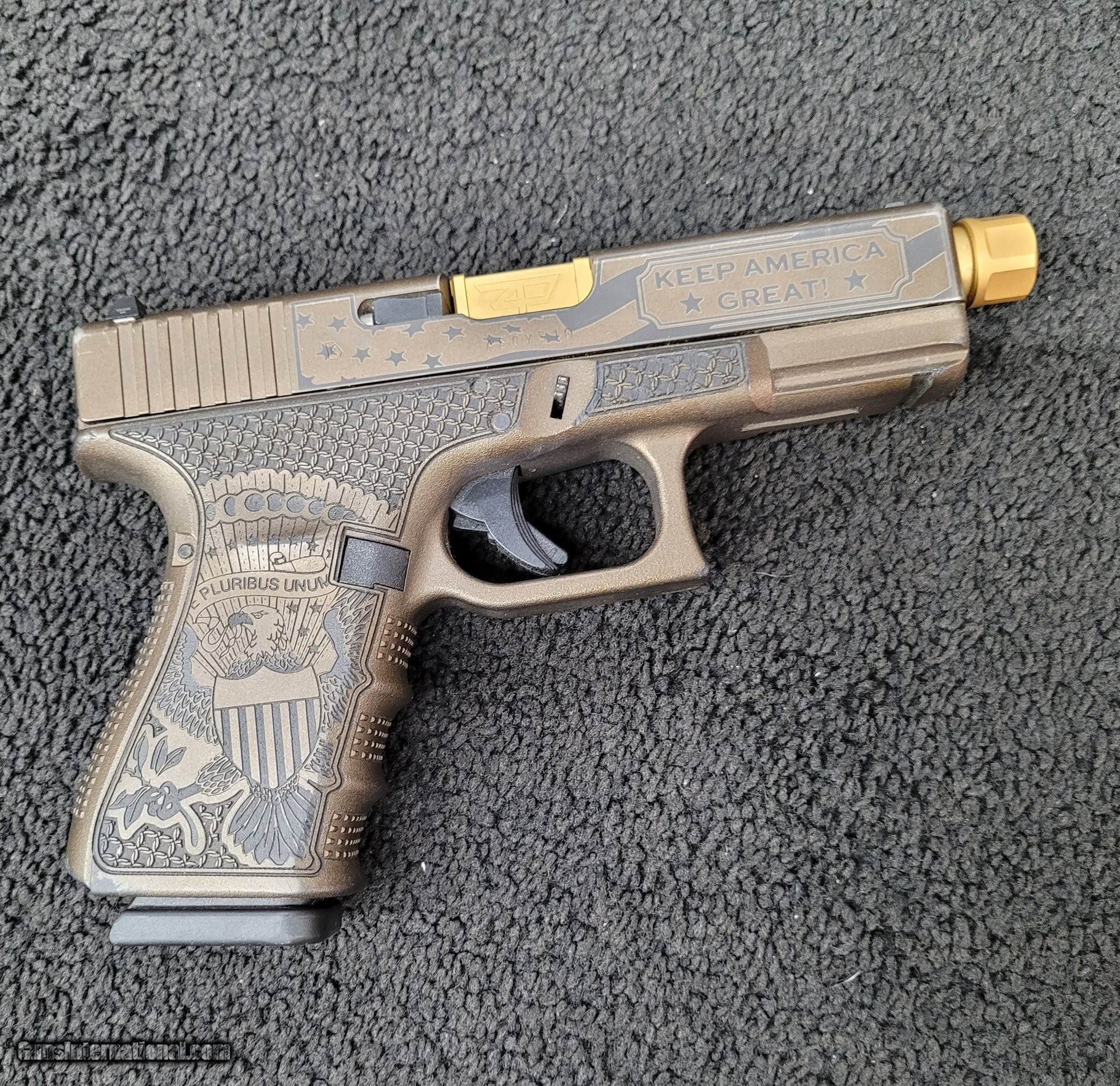 Description: Guns Listing ID: 560505 Glock 19 9mm thread barrel 9mm one fifteen round magazine cleaned and serviced SOLD Manufacturer: GLOCK Model: 19 GEN 5 Caliber Info: 9MM LUGER (9x19 PARA) Condition: Used - Non-Certified Barrels: 4 BARREL Action: SEMI AUTOMATIC Finish: bronze cerakote |