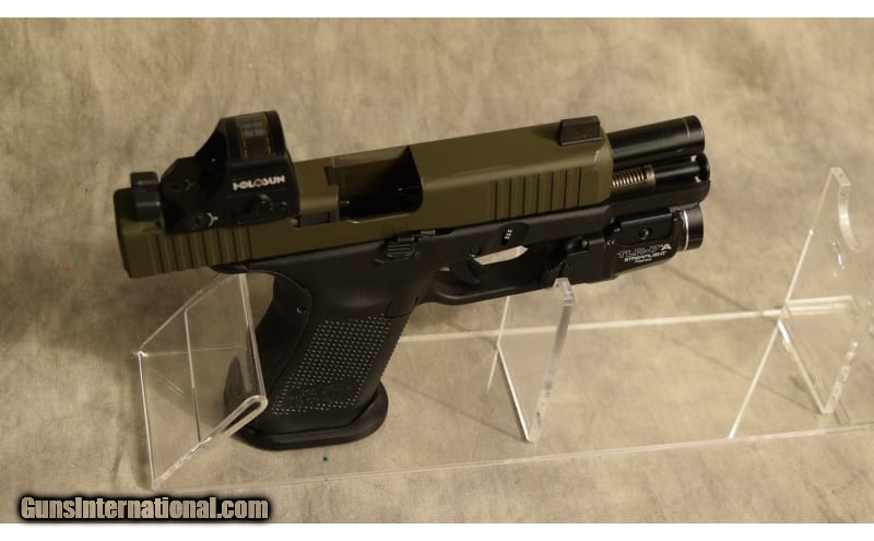 Description: With the G19 Gen5 MOS GLOCK enhances the desirability of the already near-perfect Gen5 model with the addition of the Modular Optic System (MOS). The slide is precision machined to provide a mounting system for popular optic sights. With multiple adapter plates, you can quickly and easily mount miniature electronic sights to the rear of the Gen5 GLOCK slide, which has front serrations for easier and quicker manipulations. All of the Gen5 qualities are present in this compact-size pistol: The latest GLOCK nDLC surface finish on the major metal components, unmatched in hardness and rust resistance; the high traction Gen5 frame texture, quickly reversible magazine catch, ambidextrous slide stop lever, the GLOCK Modular Backstrap System (MBS) for individual operator adjustability, the universally-acclaimed GLOCK Safe Action® System and high visibility orange magazine followers. 9mm Luger SOLD Chambers: 9MM LUGER Metal Condition: GOOD Bore Condition: GOOD Barrels: 4.02 Sights: HOLOSUN HS507C X2 Item Location: Chesterfield, MI |