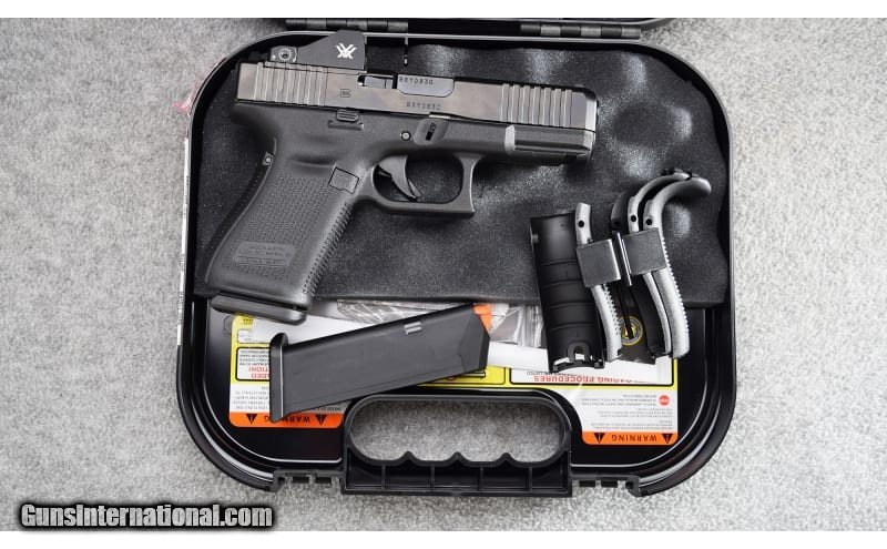 Description: This Glock Model 19 Gen 5 in 9mm Luger remains in excellent condition. A Vortex Viper reflex sight has been mounted to the Glock MOS system. Standard Glock factory sights are also present but are not co witnessed. This pistol will ship with two (2) magazines, factory box and factory backstraps. A very nice pistol! 9mm Luger SOLD Metal Condition: Excellent Bore Condition: Excellent Barrels: 4 Triggers: Factory Butt Pad: Textured Black Polymer Grip Weight: 24 Oz Sights: Vortex Viper Reflex Sight Item Location: Wheeling |
