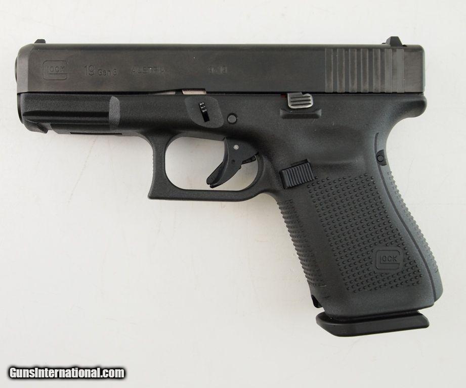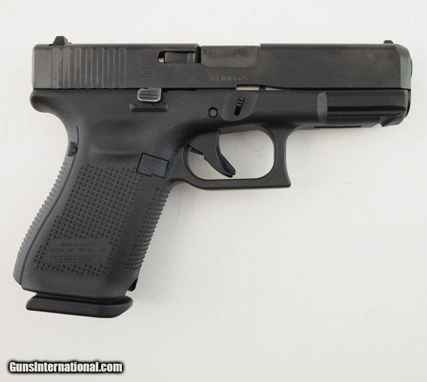 Description: Glock 19 Gen 5 9MM WBox, 4" bbl, bright shiny bore, good rifling, black finish, white outlined horse shoe rear sight, white dot front sight, textured grip, changeable back straps, accessory rail, loader, and three 15 round magazines. Add 3% for Credit Card Shipping $25.00 SOLD |