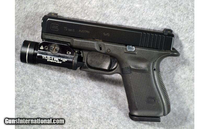 Description: A nice Glock 19 Gen 5 with original hard plastic case and paperwork. Includes three 15 round magazines and an attached TLR-1 HL Streamlight. Overall firearm is in very good condition. SOLD Manufacturer: Recent manufacture. Caliber Info: 9mm Luger. Chambers: Semi-automatic, magazine fed. Metal Condition: Good. Bore Condition: Very good. Barrels: 4" blued barrel. Triggers: Single. Weight: 24 Oz. Sights: Fixed. Extras: Comes with original hard plastic case, 3 15 round magazines and a TLR-1 Streamlight attached. Item Location: Lacey, WA |