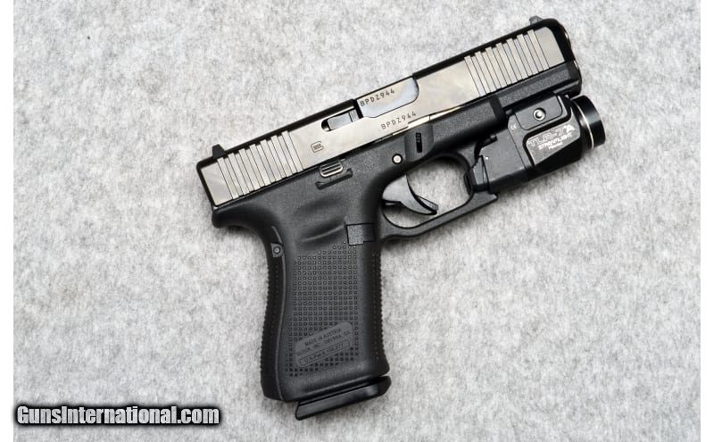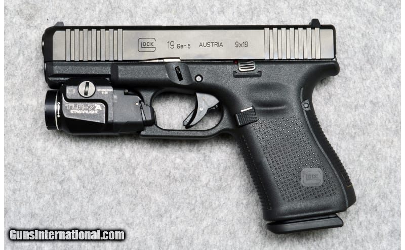 Description: This Glock Model 19 Gen 5 semi-auto pistol in 9mm Cal. It has a 3.75" barrel with a front and rear serrated slide. A blade front sight with a luminous sight dot and a notch rear sight. It is outfitted with a Streamlight TLR-7A light. The grip is a textured black polymer. Overall, the firearm is in Very Good condition with a Bright and Shiny bore. 9mm Luger SOLD Metal Condition: Very Good Bore Condition: Bright and Shiny Barrels: 3.75" barrel with a front and rear serrated slide. Triggers: Factory Weight: 1.65 lbs. Sights: Blade front with a luminous sight dot. Notch rear. Streamlight TLR-7A white LED light. Item Location: League City, TX |
