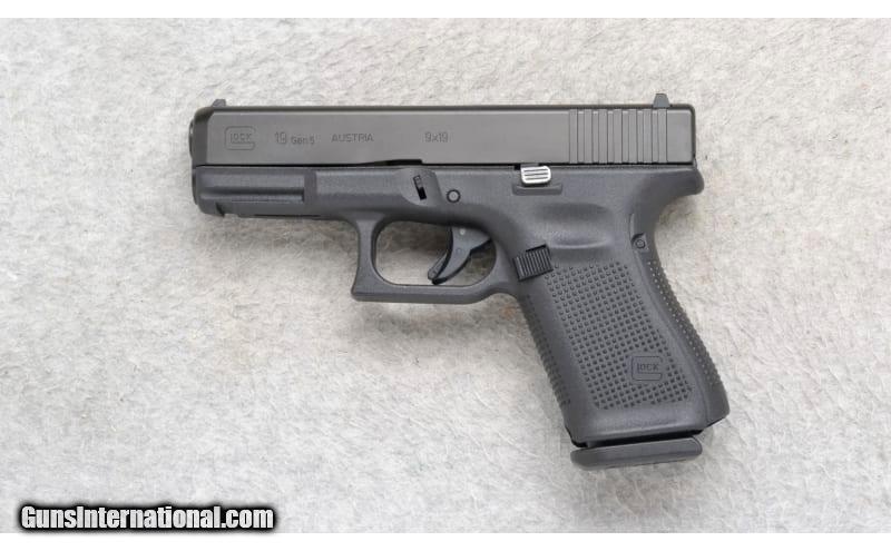 Description: This Glock Model 19 Gen 5 is a right hand semi-auto pistol in 9mm Cal. It has a 4 inch barrel with a rear serrated slide. A blade front sight and notch rear sight with white highlights. The grip is a textured black polymer with changeable back straps. It has a lower accessory rail. 9mm Parabellum SOLD Chambers: 15 round magazine. Metal Condition: Excellent. Bore Condition: Excellent. Barrels: 4 inch barrel with a rear serrated slide. Weight: 24 oz. Sights: Blade front. Notch rear. White highlights. Item Location: Richfield, WI |