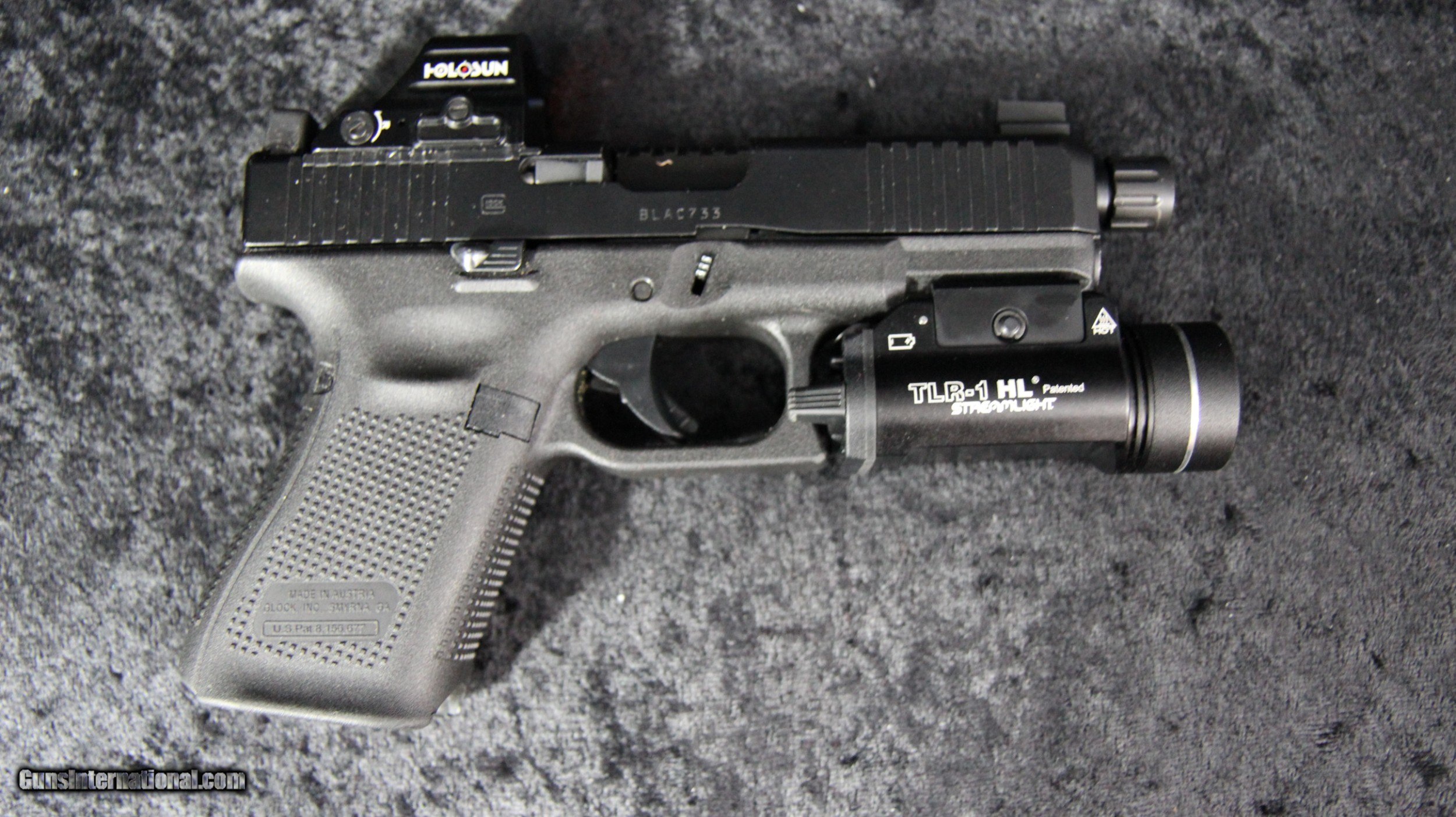 Description: Glock 19 Gen 5 with the Glock M.O.S. (Modular Optic System for easy optic mounting) with an Agency threaded barrel, Holson Red Dot, TLR I, and spare slide. Also has original box and paperwork. With a 4 3/8" barrel length and weighing 26oz, there is no more reliable or dependable pistol on the market. SOLD Handgun Caliber: 9x19mm Parabellum (9mm Luger, 9x19mm NATO) Manufacturer: Glock Model: 19 Gen 5 M.O.S. Serial Number: BGZX176 Barrel Length: 4 3/8 Condition: 90% Weight: 26oz Extras: Agency Threaded barrel and extra slide, TLR-1 |
