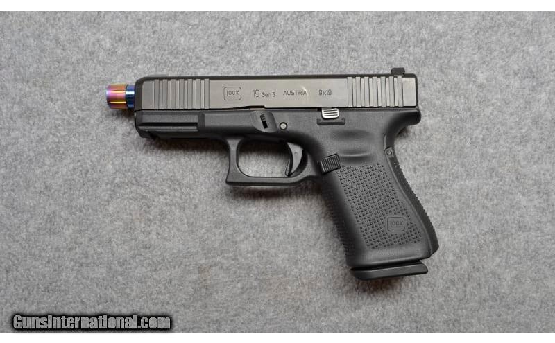 Description: Pre-owned Glock 19 Gen5 chambered in 9mm, 4.5" TRYBE threaded barrel, ambidextrous slide stop lever. 9mm Luger SOLD Metal Condition: Good Condition Bore Condition: Bright and shiny with good rifling Barrels: Comes with original and TYRBE threaded barrel Weight: 24 oz. Sights: 3-dot night sights Item Location: Springfield, OR |
