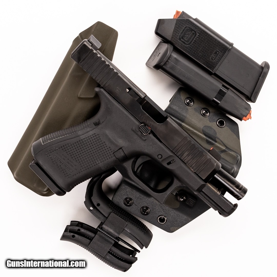 Description: Guns Listing ID: 394195 The Glock 19 is a polymer-framed, semi-automatic handgun made with law enforcement in mind and equally well-suited for personal protection. This G19 Gen 5 is equipped with AmeriGlo Idot orange front sights. Purchase includes the original case, manual, three 15-round magazines, Tulster Contour OWB holster, and a Tulster Profile IWB holster with DCC Monoblock clip. SOLD Manufacturer: GLOCK Model: 19 GEN5 Caliber Info: 9MM LUGER Condition: Used - Certified Barrels: 4 BARREL Finish: BLACK |