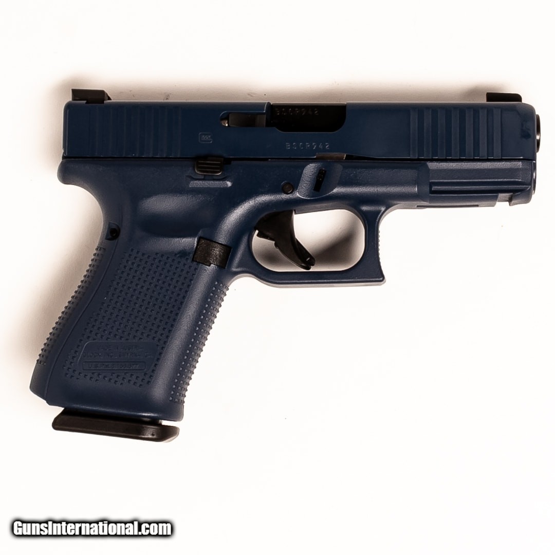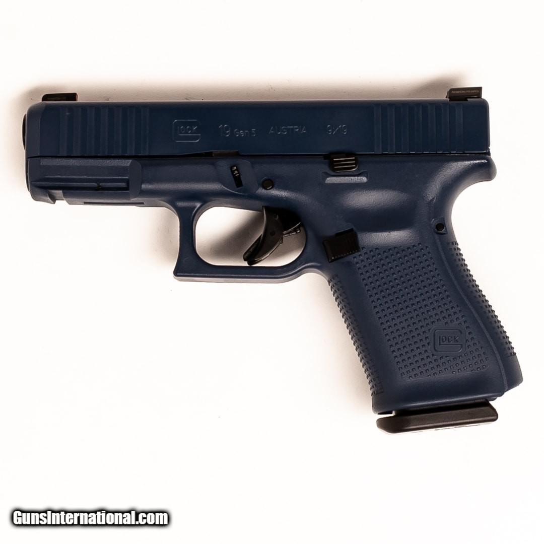 Description: Guns Listing ID: 608419 The Glock 19 is a polymer-framed, semi-automatic handgun made with law enforcement in mind and equally well-suited for personal protection. This G19 Gen 5 sports a Kel-Tec navy blue (H-127) Cerakote finish. Four magazines are included. SOLD Manufacturer: GLOCK Model: 19 GEN5 Caliber Info: 9MM LUGER (9X19 PARA) Condition: Used - Certified Barrels: 4 BARREL Finish: CUSTOM |
