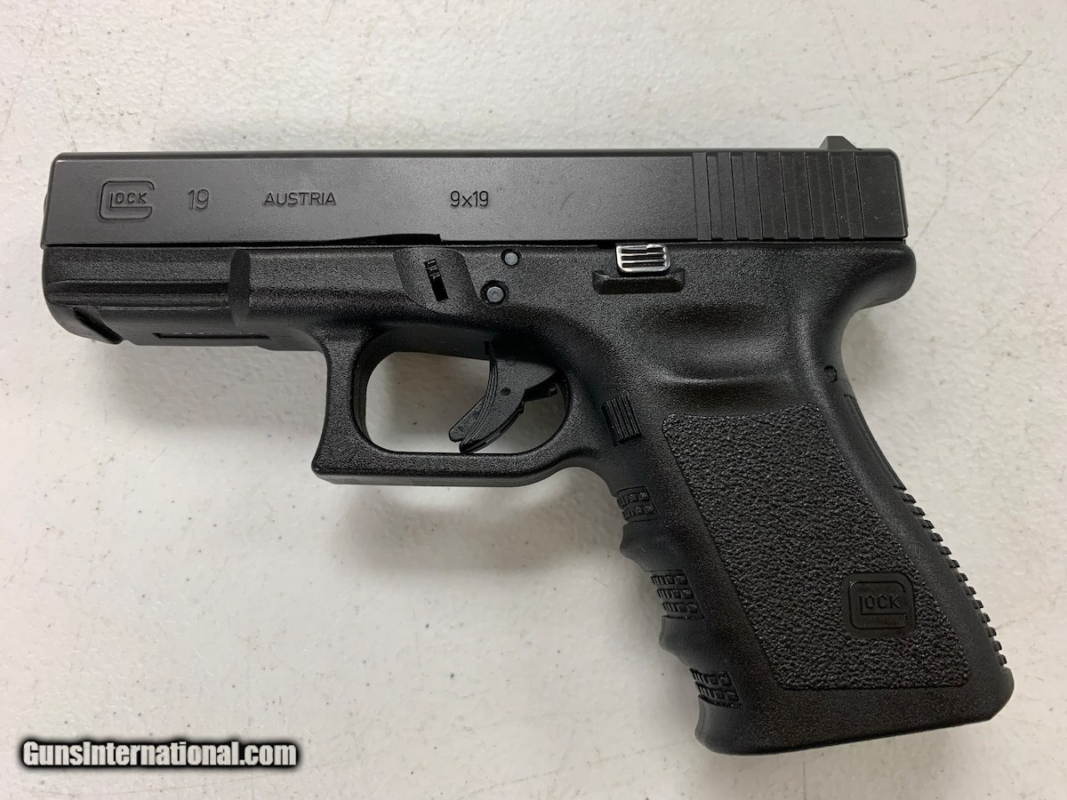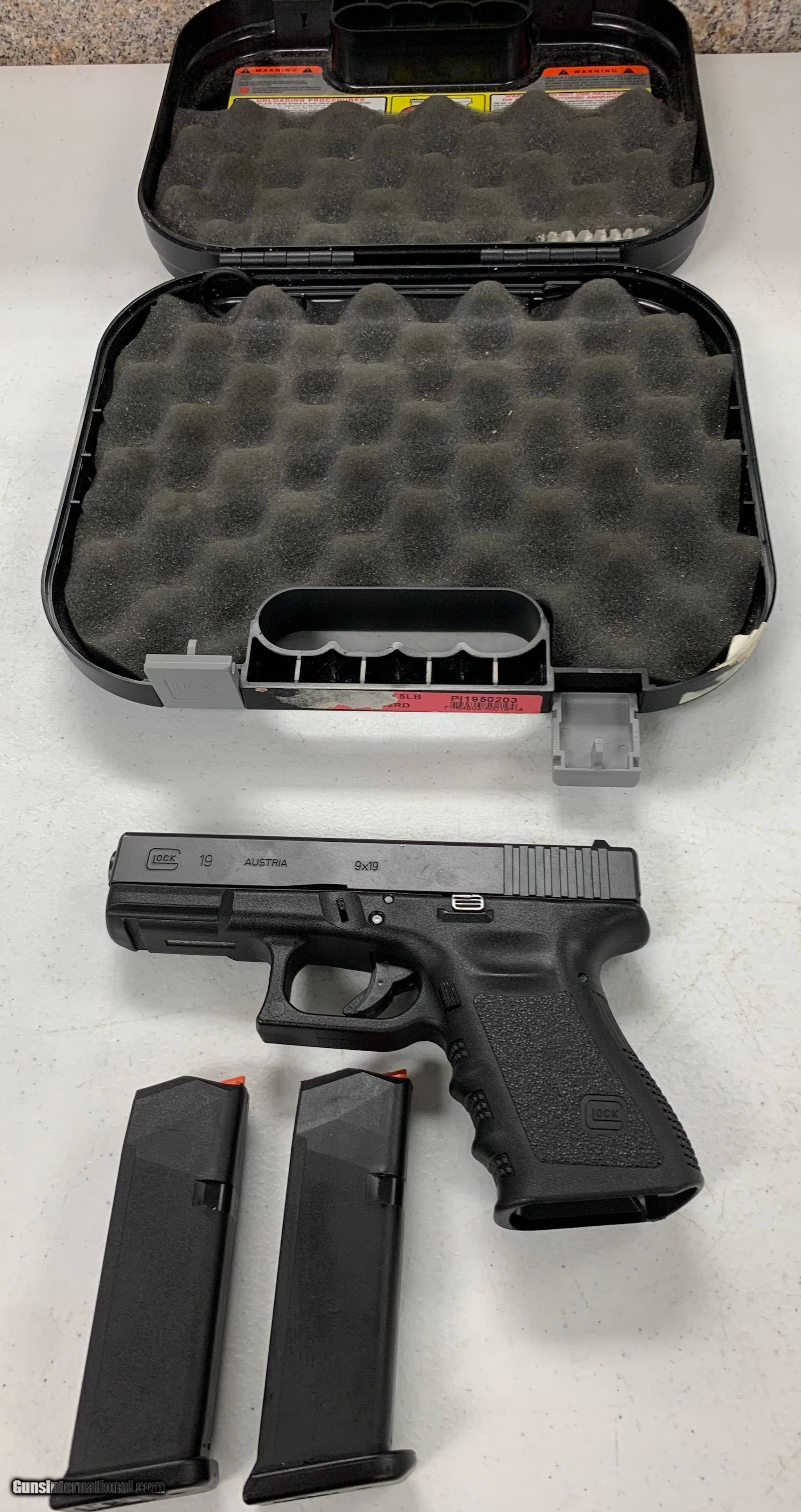 Description: Guns Listing ID: 599829 Very good condition. May have some scuffs or scratches. (SEE PICS). Includes retail case and 2-15rd magazines. This is a gem 3. SOLD Manufacturer: GLOCK Model: 19 Caliber Info: 9 MM Condition: Used - Non-Certified Barrels: 4 BARREL Finish: BLUE |