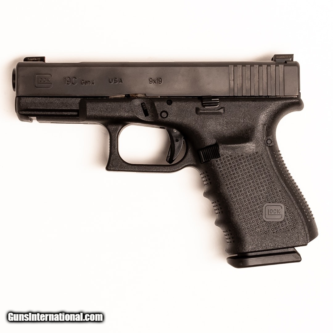 Description: Guns Listing ID: 554065 This Glock G19C is a semi-automatic handgun with an integrated compensator, which offers better control and improved accuracy. Chambered in 9mm, this pistol is built on Glock‚‚s signature polymer frame. Aggressive texturing and finger grooves on this Glock 19C Gen 4 ensure a comfortable and secure grasp. This model additionally sports AmeriGlo Spartan Hi-Viz night sights and includes 18 15-round magazines. SOLD Manufacturer: GLOCK Model: 19C GEN 4 Caliber Info: 9MM LUGER (9X19 PARA) Condition: Used - Certified Barrels: 3.7 BARREL Finish: BLACK |