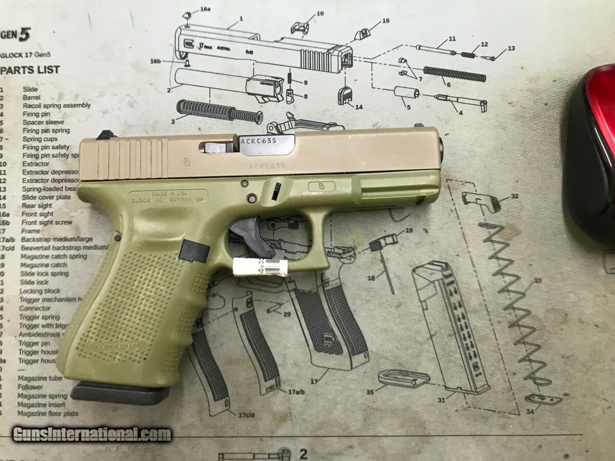 Description: Guns Listing ID: 865766 two tone green & tan with 15 round mag included excellent condition SOLD Manufacturer: GLOCK Model: 19gen4 Caliber Info: 9MM LUGER (9X19 PARA) Condition: Used - Non-Certified Barrels: 4.4 BARREL Finish: GREEN |