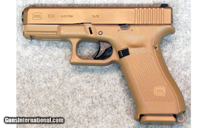 Description: Glock ~ 19X ~ Chambered in 9 mm Luger. Is a semi-auto striker fire crossover pistol configured in a combat orientation. Features a 4" barrel paired with factory tritium night sights. Firearm has a coyote tan nPVD coated slide paired with a coyote tan frame, and has an ambidextrous slide release along with a lanyard loop. Comes with three 17 + 1 capacity magazines. 9mm Luger SOLD Chambers: 9 mm Luger. Metal Condition: Very good condition. Bore Condition: Good condition. Triggers: 8 pounds. Weight: 1.5 pounds Sights: Night sights. Item Location: Acworth, GA |