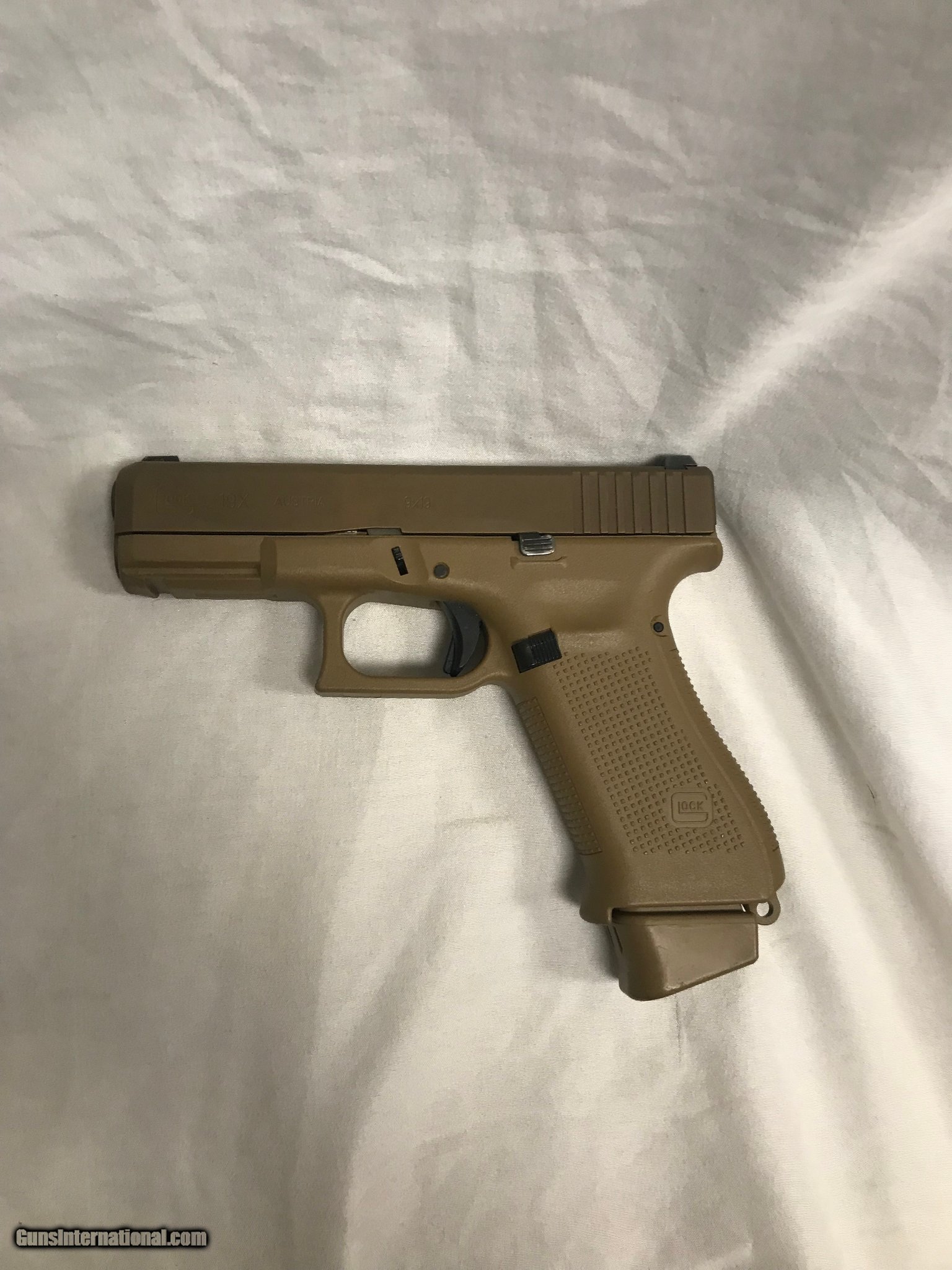 Description: Guns Listing ID: 523997 According to our rating scale I would Rate this gun \"Good\". I have taken multiple pictures to show the condition of it. We want you to get the best impression of it. With the hopes when you get it, that it is better than what you thought. 100% working order. Scuffs, scratches, and dings are present Not original box Comes with gun, box and two mags. The bore I would rate 8 out of 10. If I had to rate the firearm in condition I would say 8 out of 10.(Please see my pictures for a better detailed idea), Please see all Photos for a very detailed Description of condition. We rate firearms using these condition standards, for modern firearms. NEW-A gun given a grade of \"new\" looks just as it did when it left the factory and has never been sold at a retail store. PERFECT-A “perfect” gun is literally as good as new, although it may have been sold in a retail store. EXCELLENT-An “excellent” rating means the gun appears to be in perfect condition but may have had minor use. VERY GOOD-A “very good” firearm is perfect mechanically but may have minor cosmetic blemishes. GOOD-A rating of “good” indicates that the gun is in proper working condition but may show signs of wear. FAIR-A “fair” firearm may or may not be in safe working order. It has not been test fired, only visually inspected. It may need repair or maintenance. UNRATED-Unrated condition means this firearm has not been test fired, it may function perfectly or it may be in need of repair. Cosmetically it may be in very good to fair condition. You will need to look at the pictures and ask questions SOLD Manufacturer: GLOCK Model: 19x Caliber Info: 9MM LUGER (9x19 PARA) Condition: Used - Non-Certified Barrels: 4.02 Action: SEMI AUTOMATIC Finish: fde |